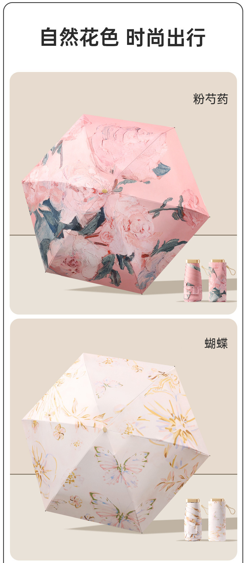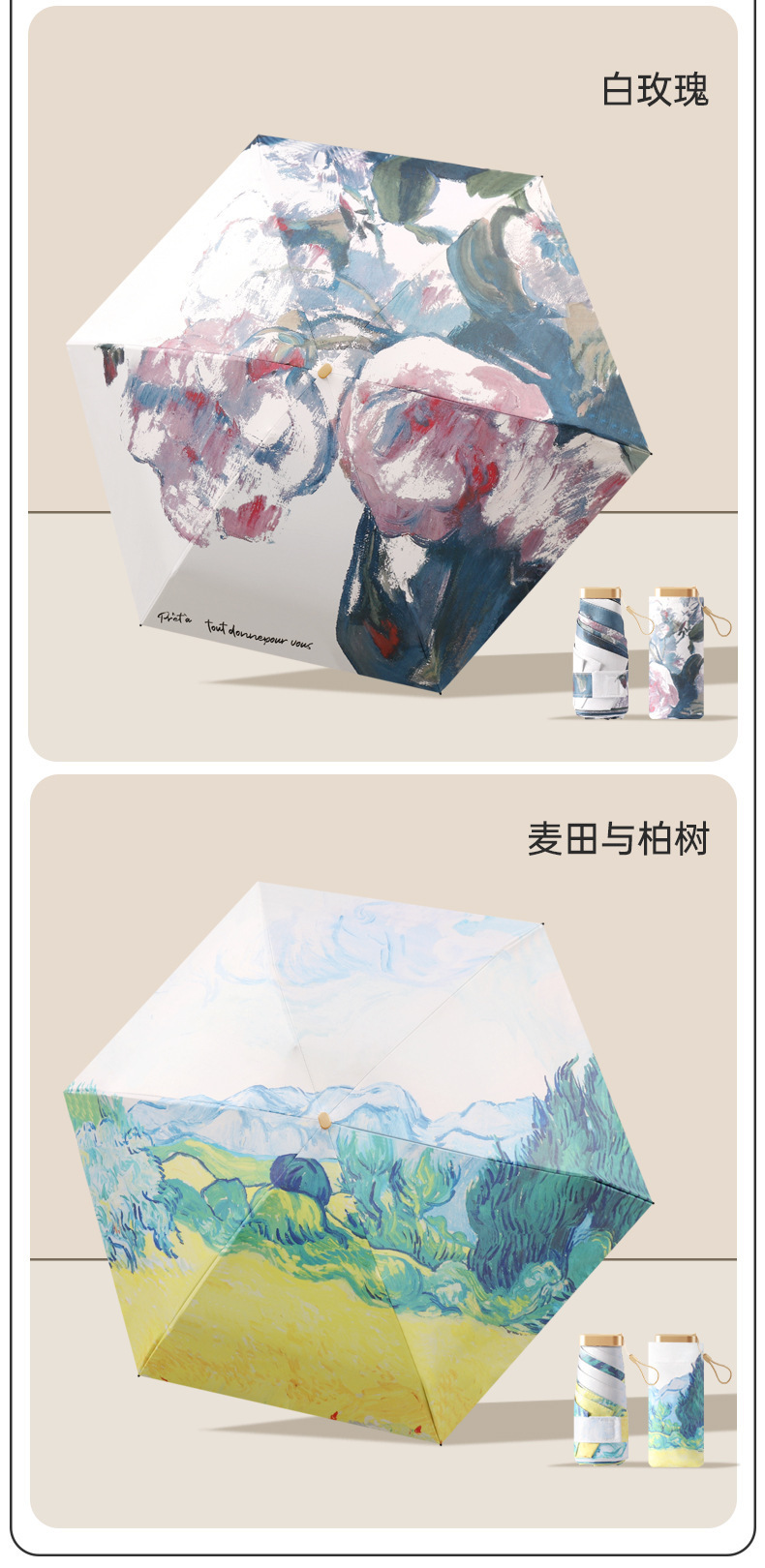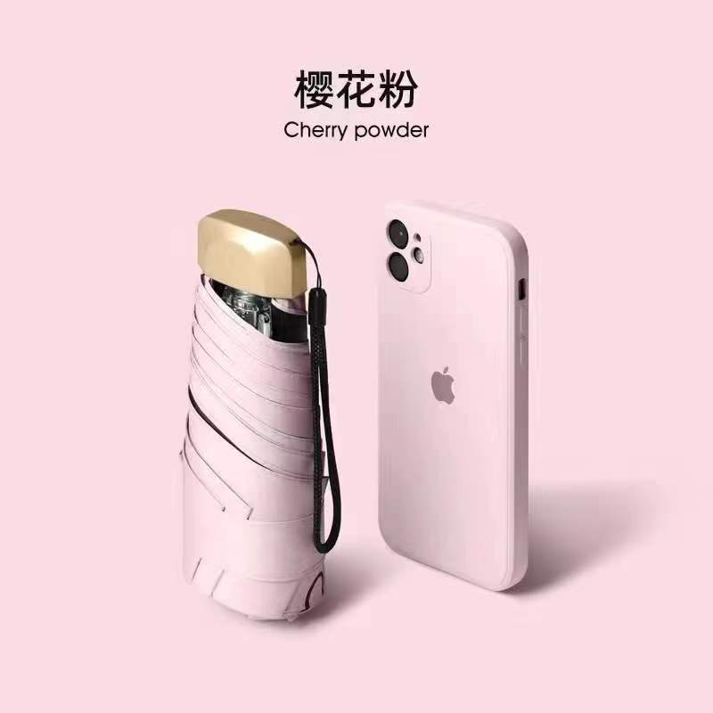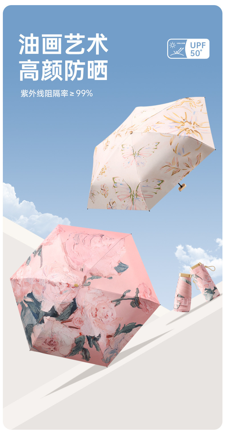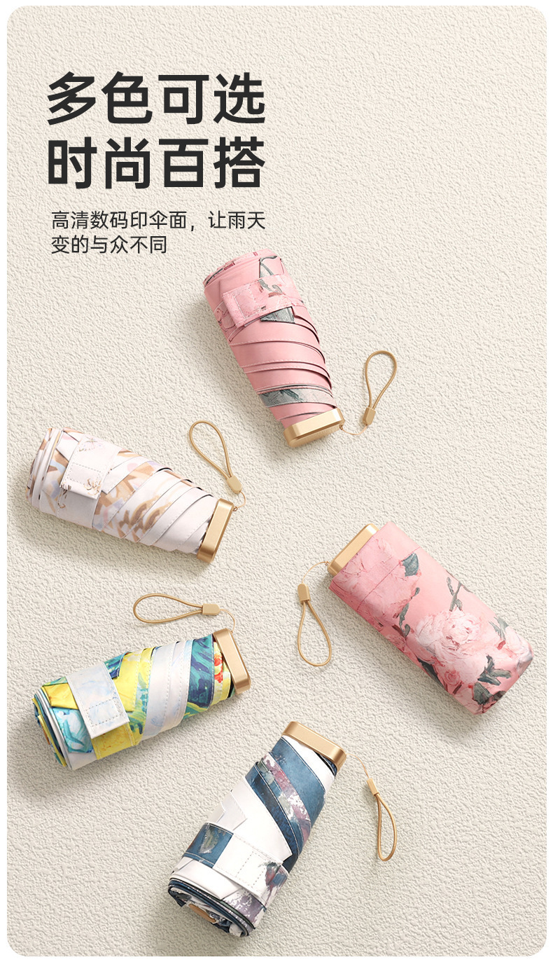 迷你油画五折伞小巧便携防晒胶囊伞防紫外线黑胶太阳伞折叠伞现货