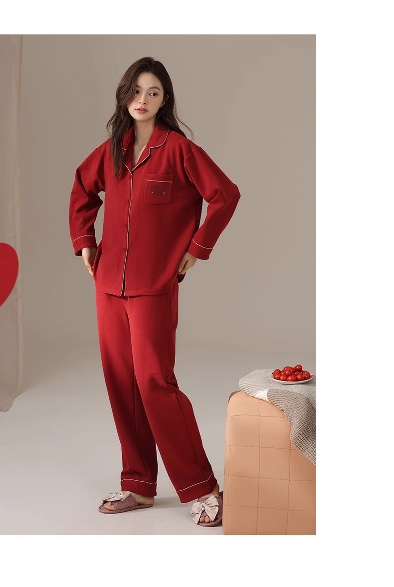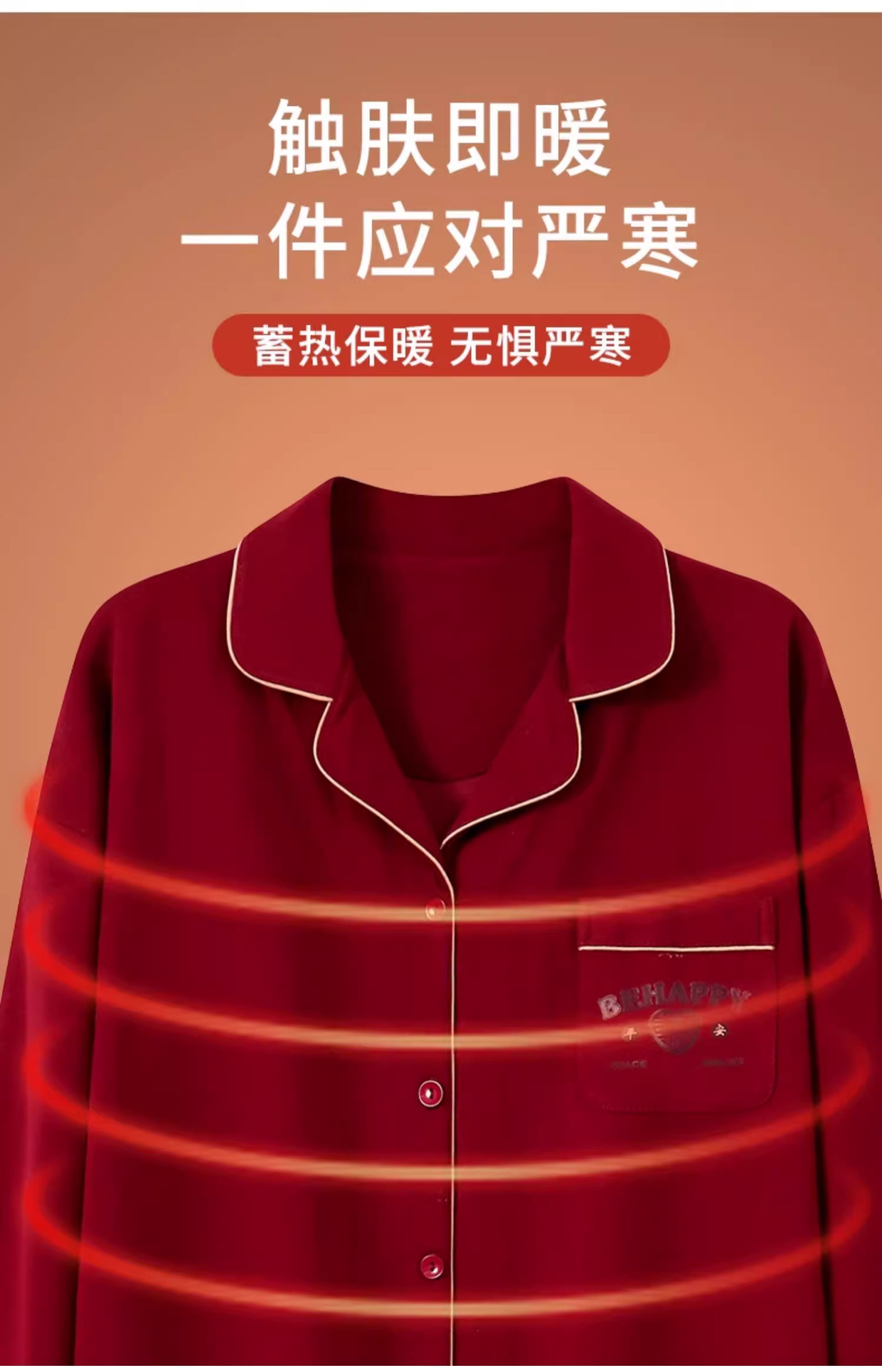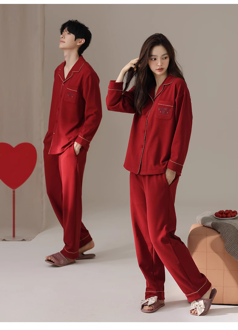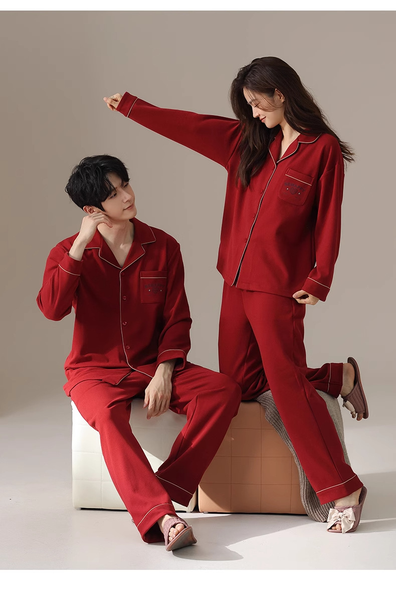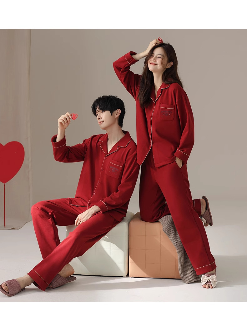 여성과 남성을위한 Longsha Red Pajamas 결혼식 신혼 부부 세트 벨벳 긴팔 기모 두꺼운 가을과 겨울 홈 옷스토어 가기