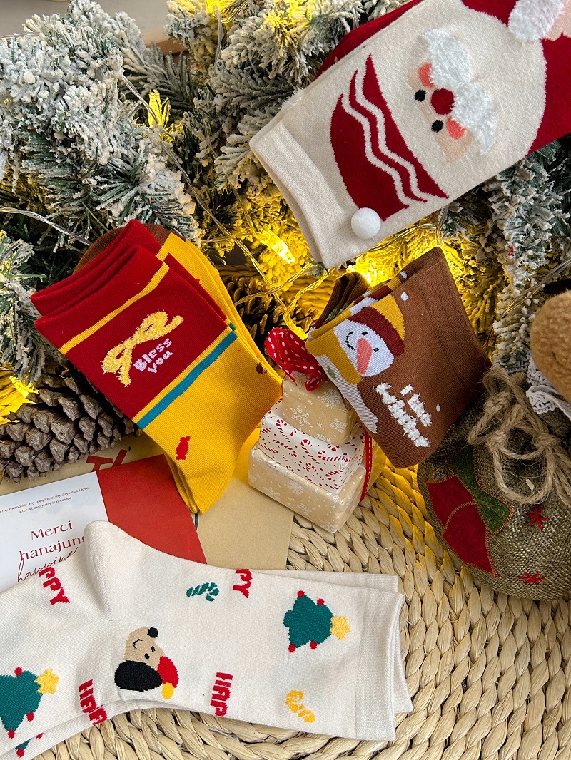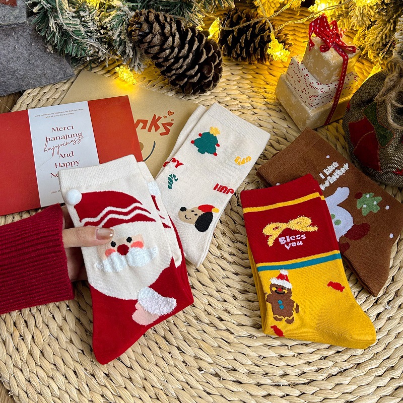 크리스마스 양말 어린이 가을과 겨울 만화 크리스마스 선물 선물 상자 사랑스러운 튜브 양말의 한국 버전은 양말을 쌓아 유럽 국경스토어 가기