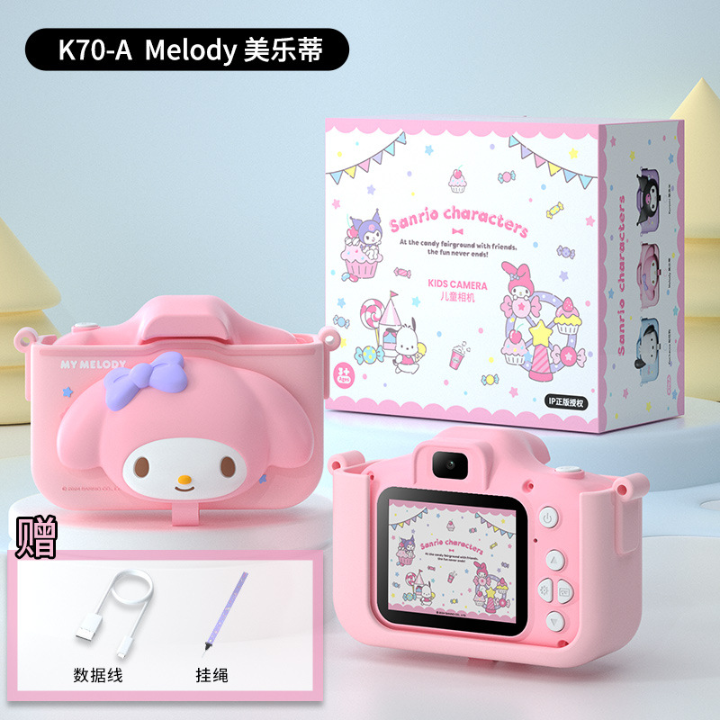 새로운 산리오 합동 Kulomi Gao Qing Front 및 후면 더블 카메라 어린이 카메라 만화 귀여운 작은 SLR 선물스토어 가기