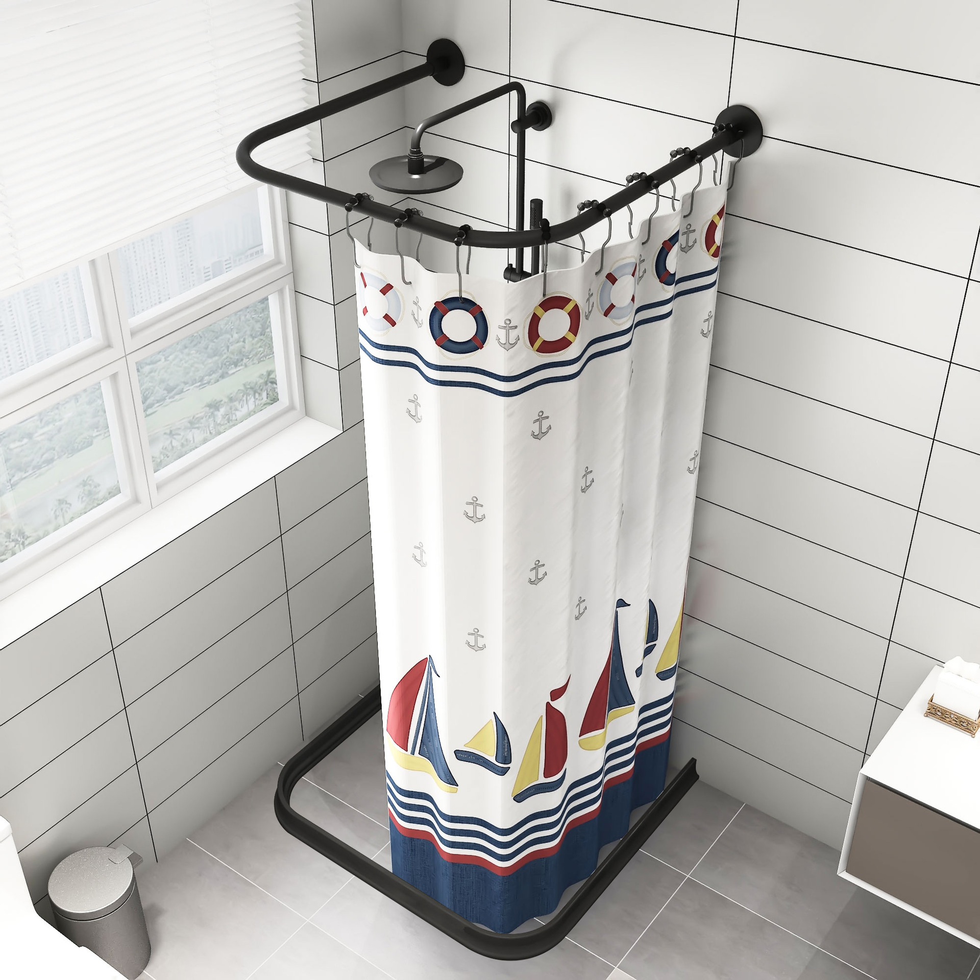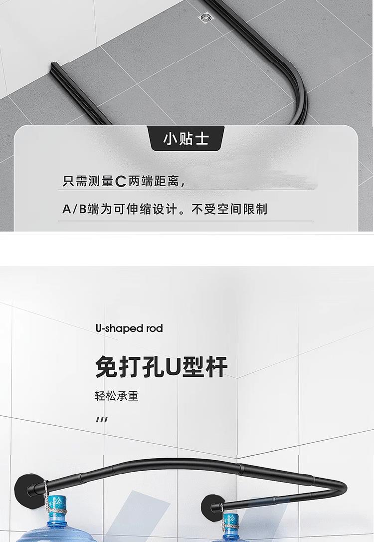 • 검정색 U자형 텔레스코픽 막대 80*80*80+샤워 커튼