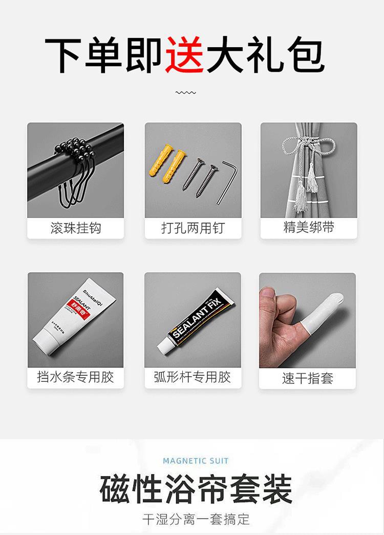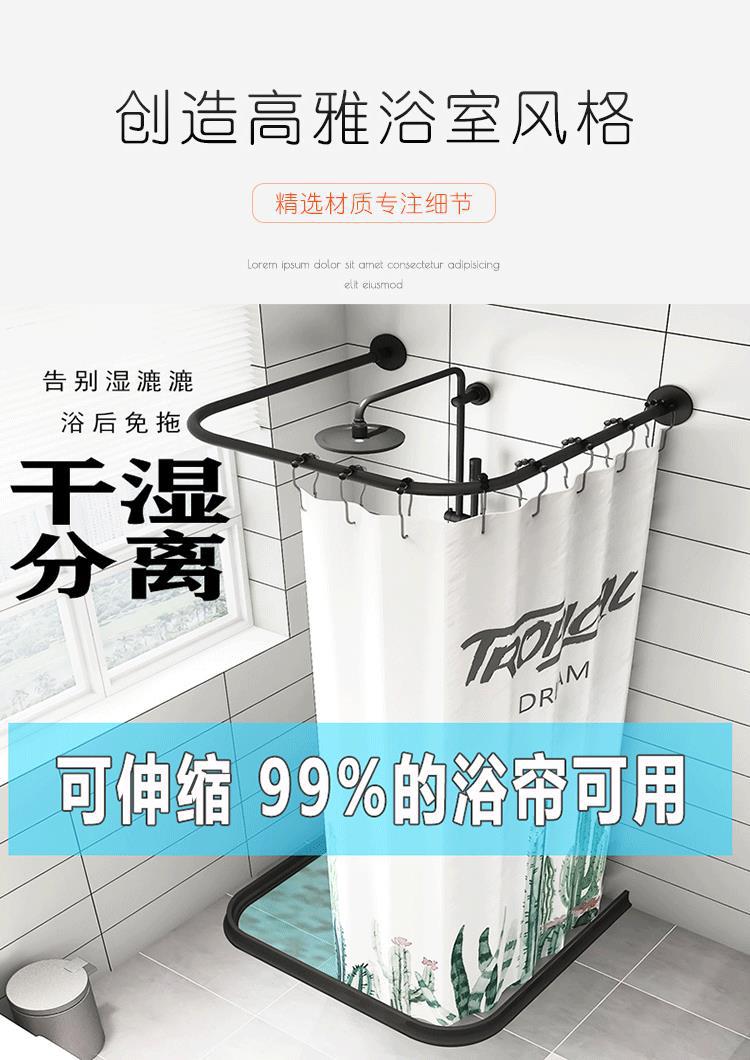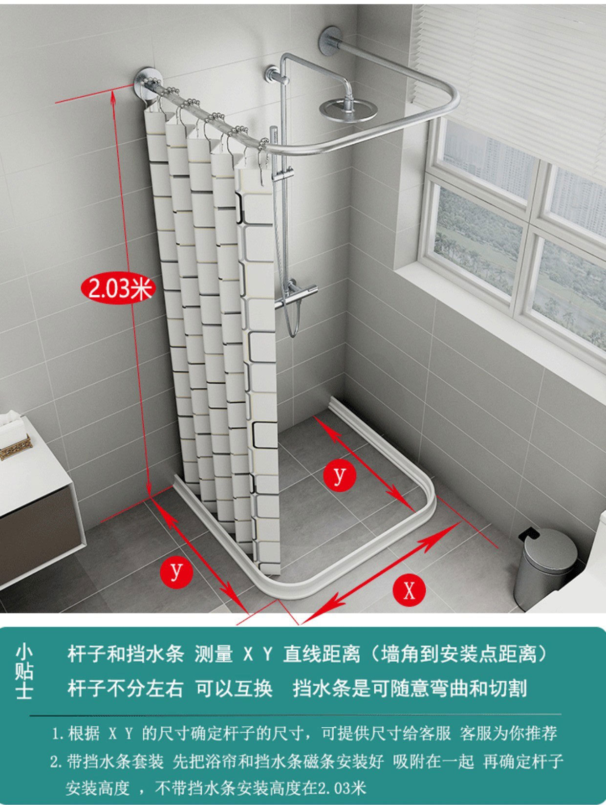 욕실 방수 천 샤워 커튼 세트 펀치없는 U 자형 파티션 고급 건조 및 젖은 분리 자기 화장실 물 장벽스토어 가기