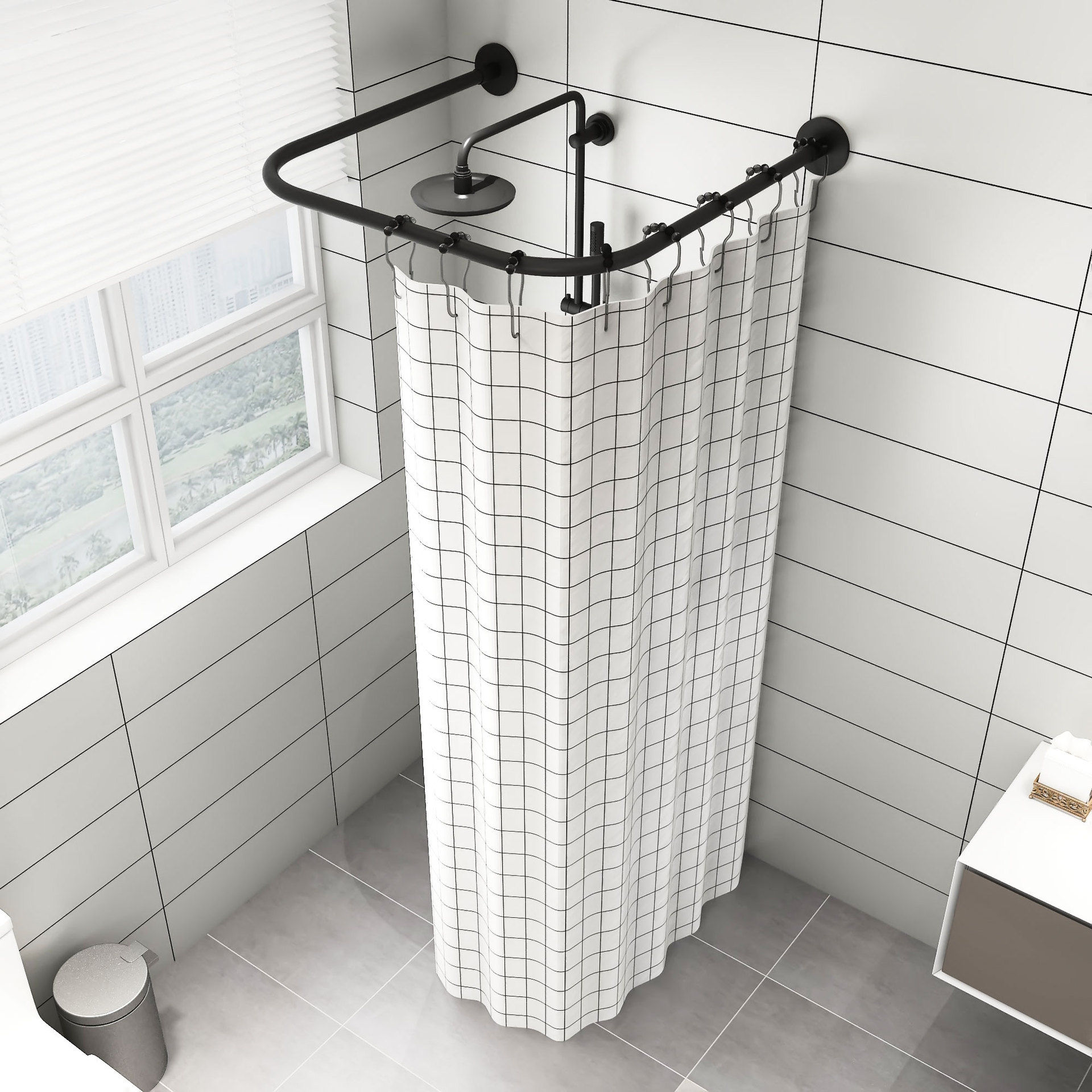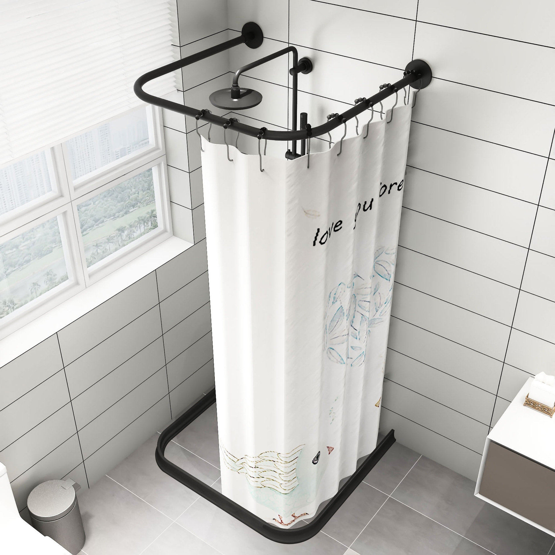 • 검정색 U자형 텔레스코픽 막대 100*100*100+샤워 커튼