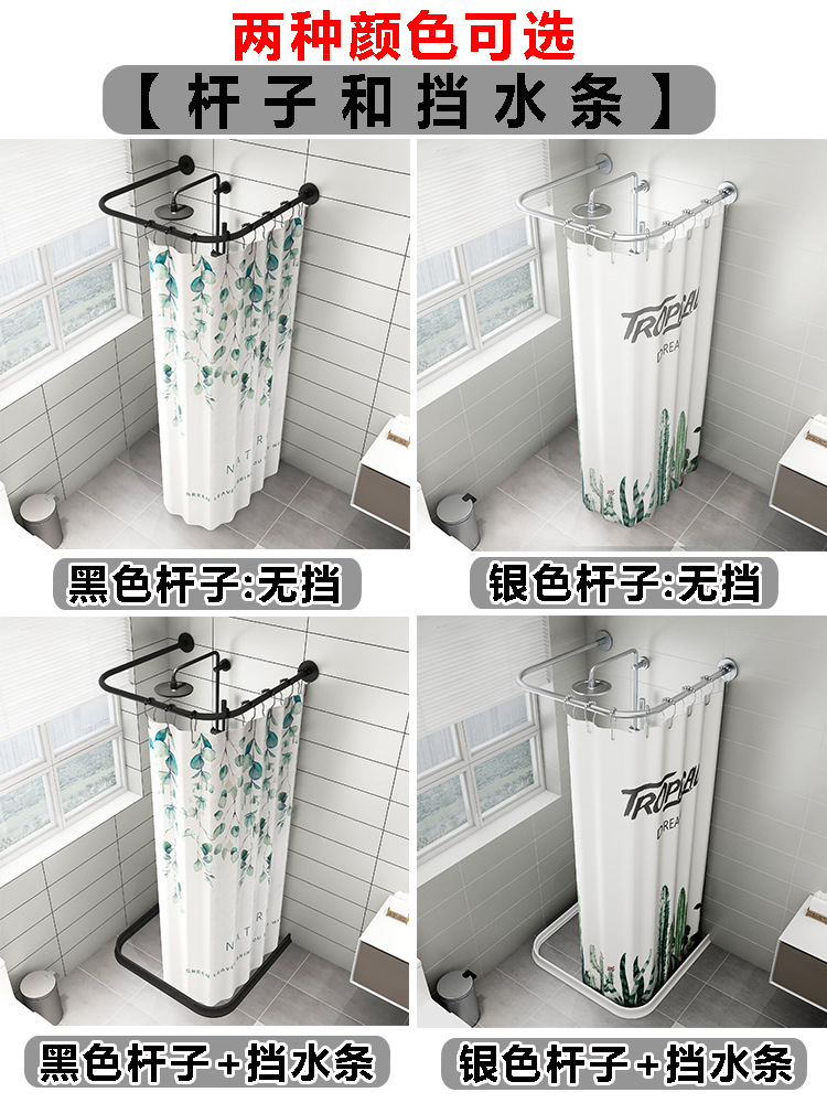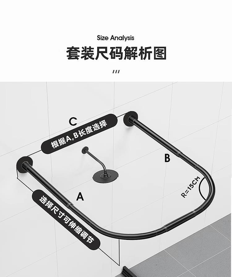 • 검정색 U자형 막대 90*110*90+샤워 커튼+물 유지 스트립