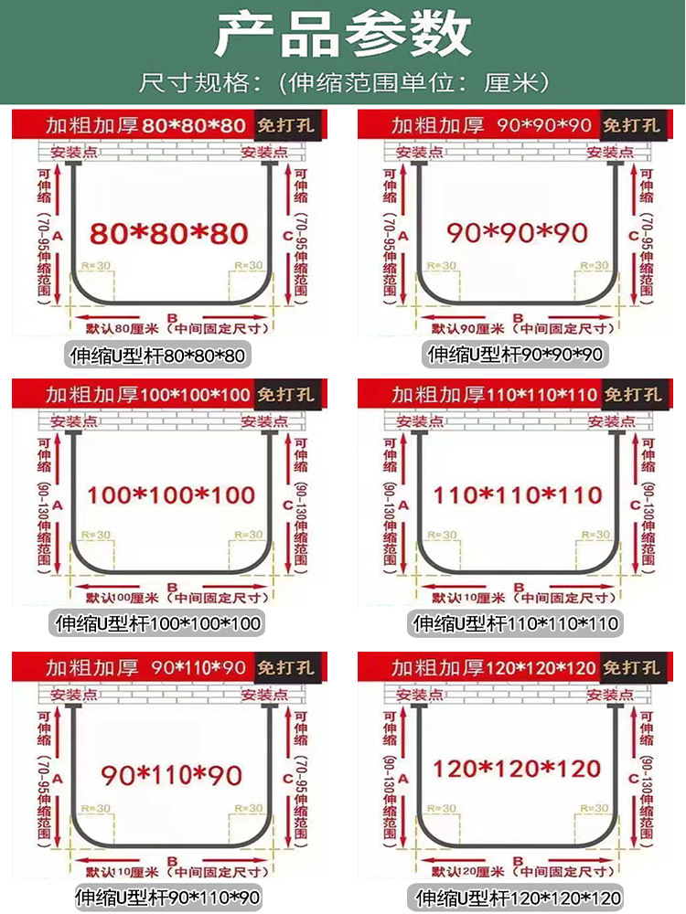 • 실버 U자형 텔레스코픽 폴 90*110*90+ 샤워 커튼