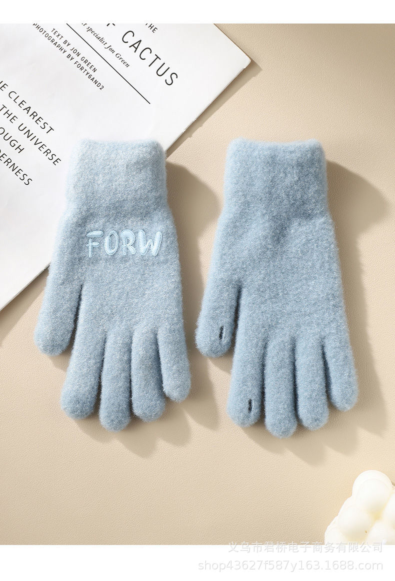 장갑 여성의 겨울 따뜻한 양모 니트 높은 색상 가치 5 손가락 학생 야외 사이클링 방한 손가락 터치 스크린