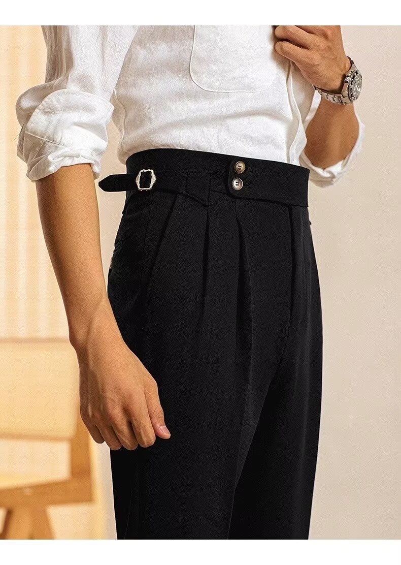 2024 한국식 사계절 올 매치 바지 남자 스트레이트 올매치 루즈 펜던트 솔리드 컬러 바지 남자 패셔너블 비 다림질 바지