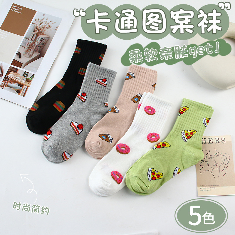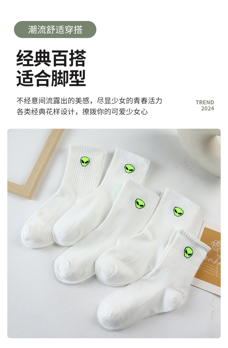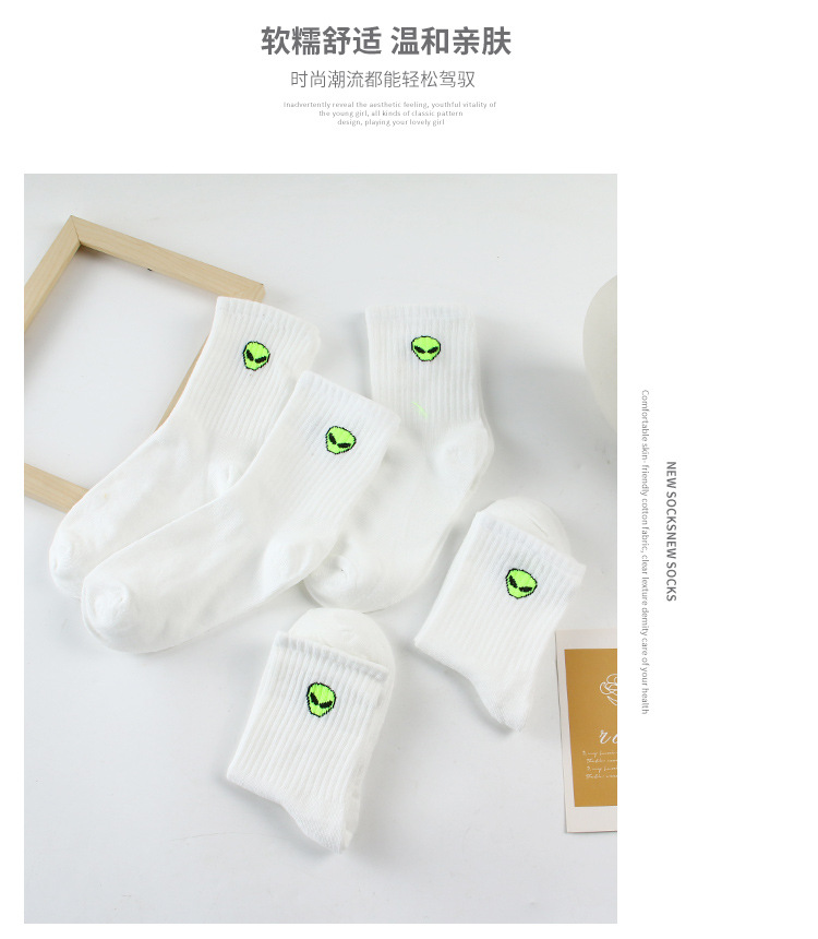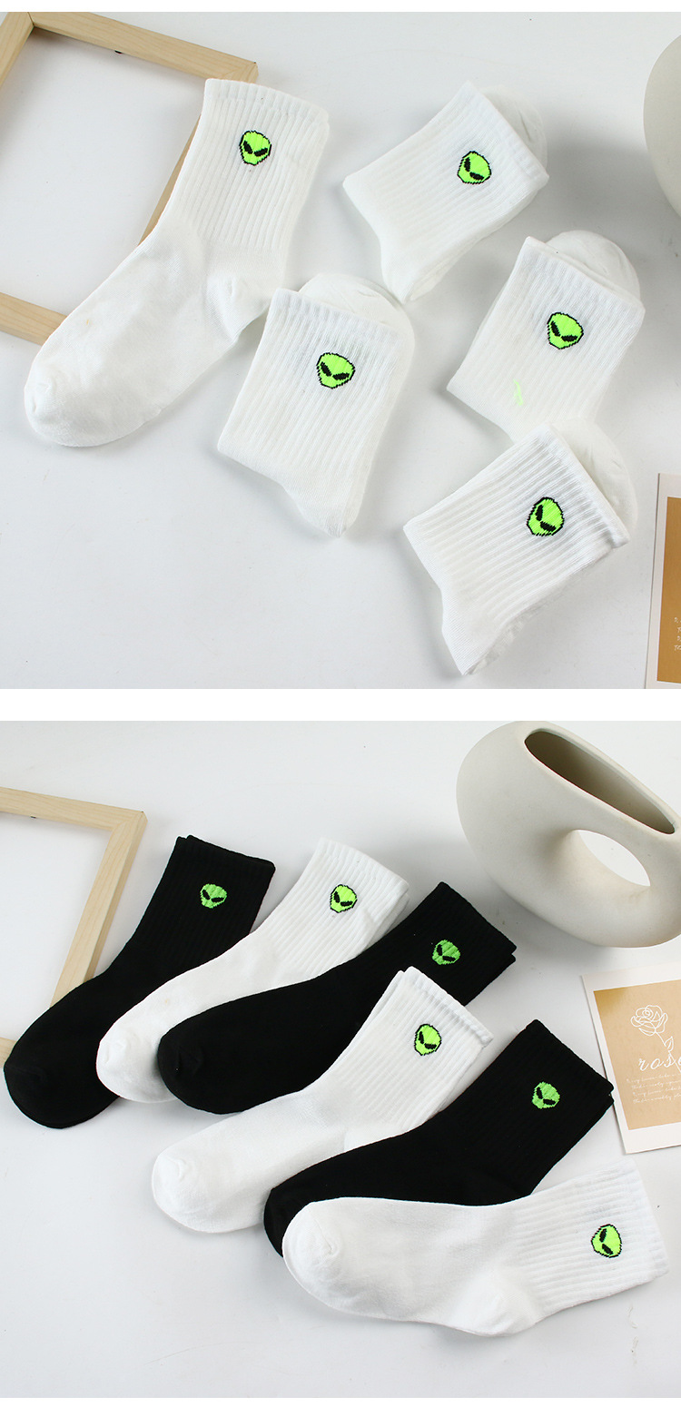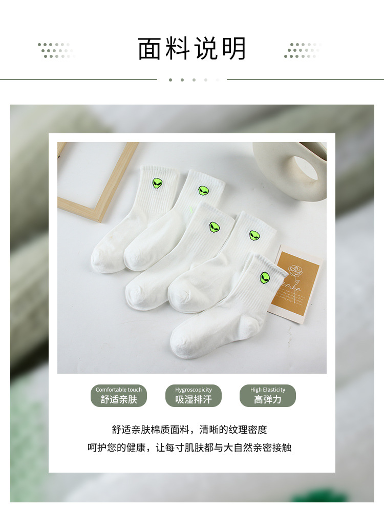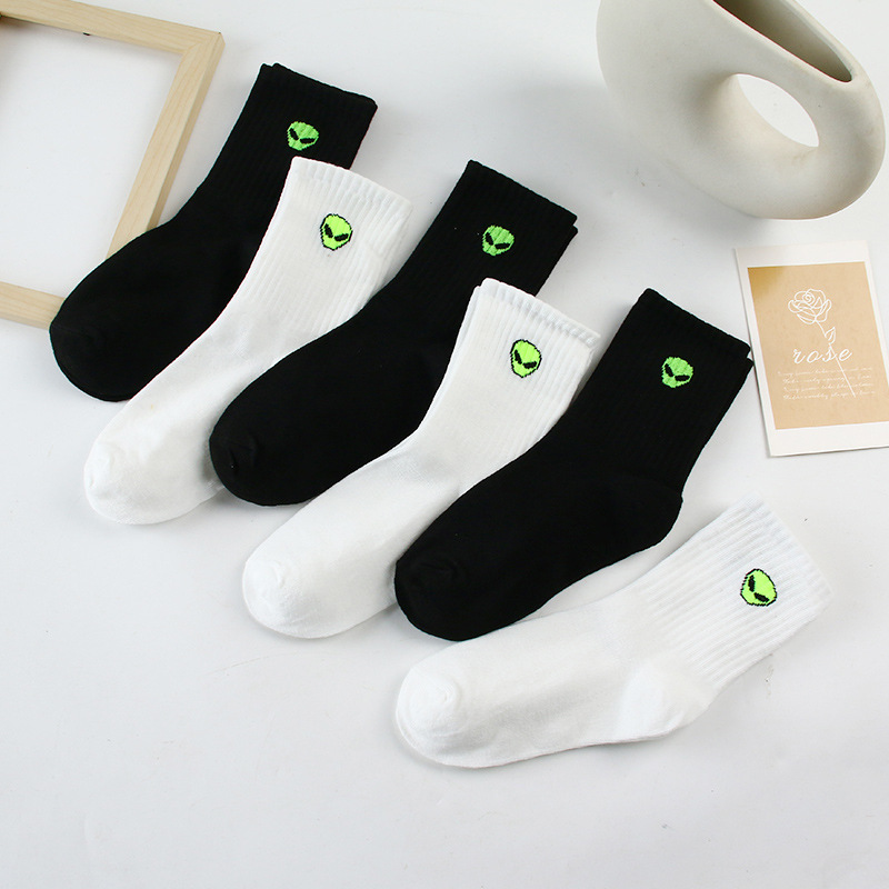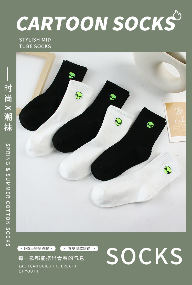 화이트 양말 남자 봄과 가을 만화 외국인 스포츠 양말 Ins All-match Mid-length Socks 커플의 블랙 스타킹스토어 가기
