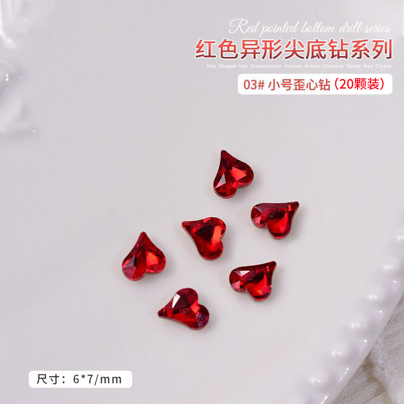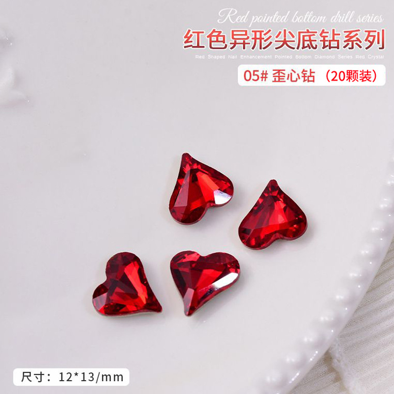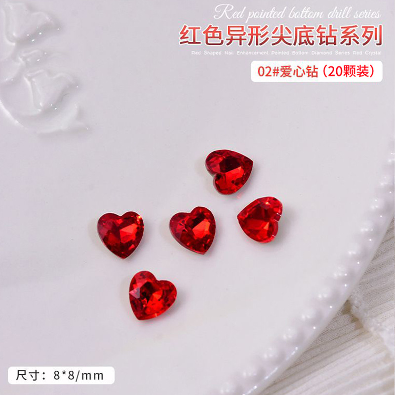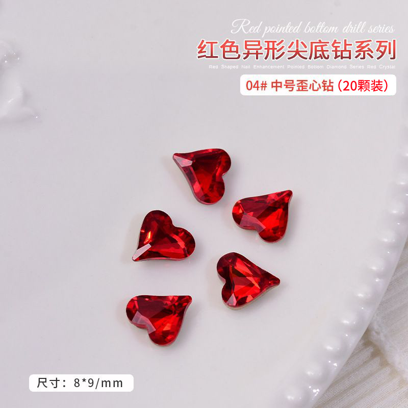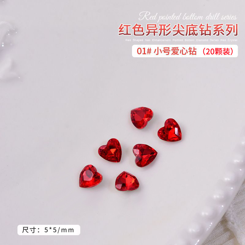 중국 레드 색상의 뾰족한 모양의 새해 네일아트 크리스탈 슈퍼 반짝이 와이어 하트 큐빅 네일 장식스토어 가기