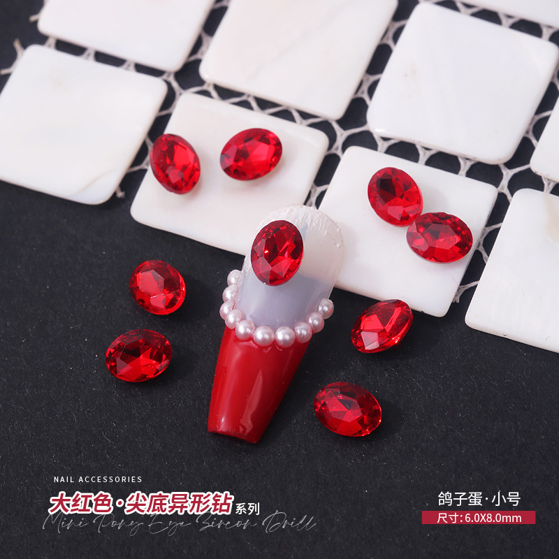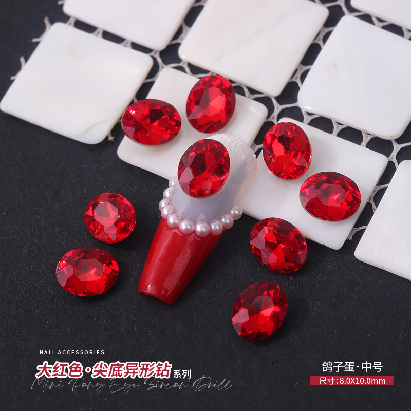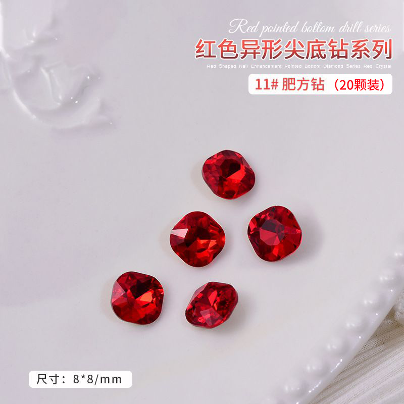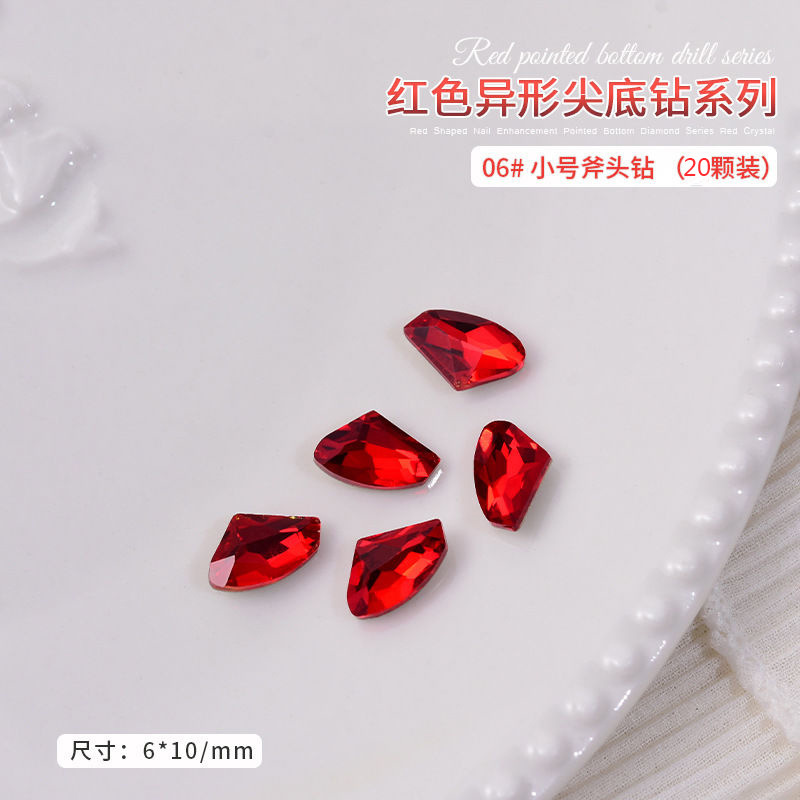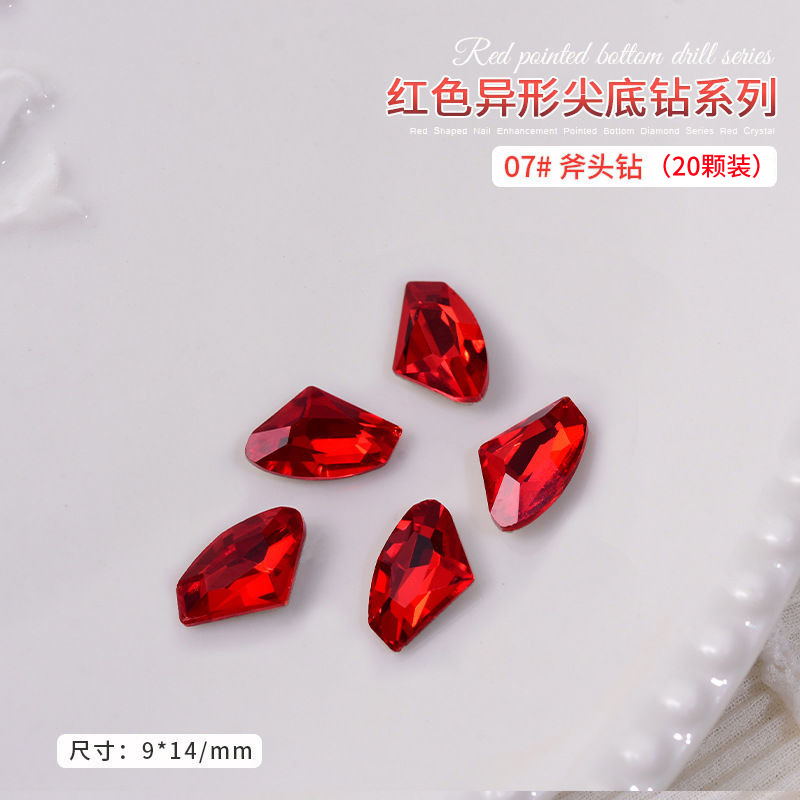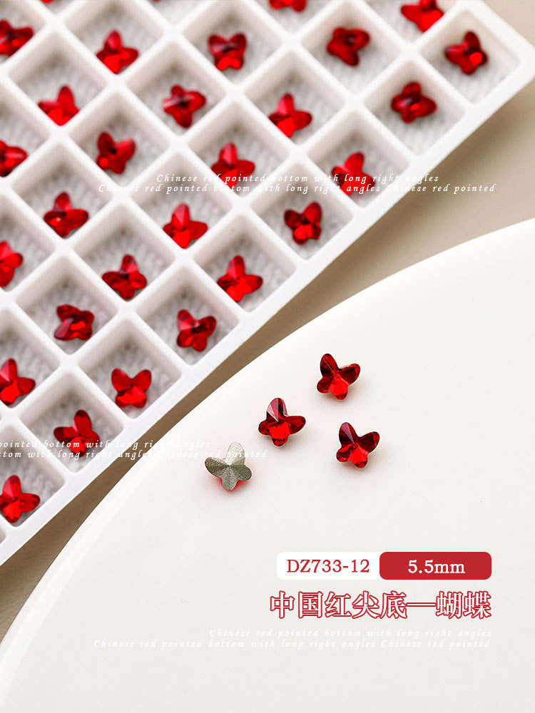 중국 레드 색상의 뾰족한 모양의 새해 네일아트 크리스탈 슈퍼 반짝이 와이어 하트 큐빅 네일 장식스토어 가기