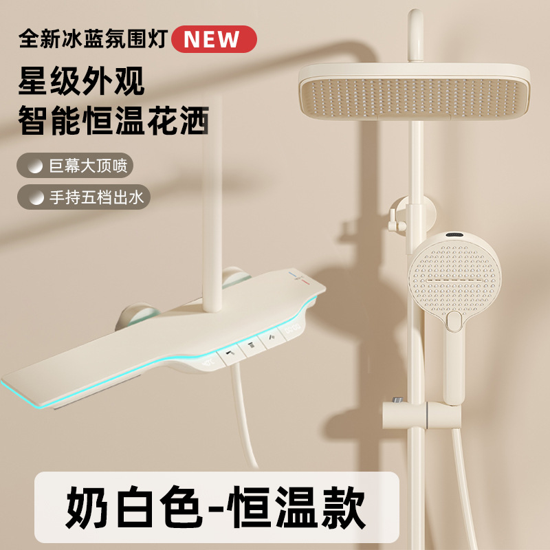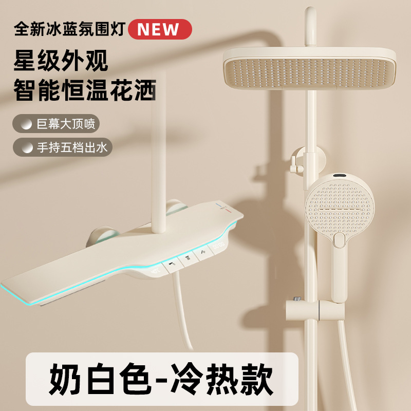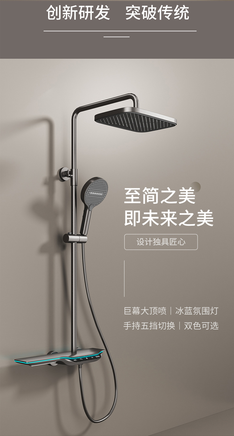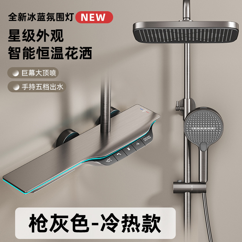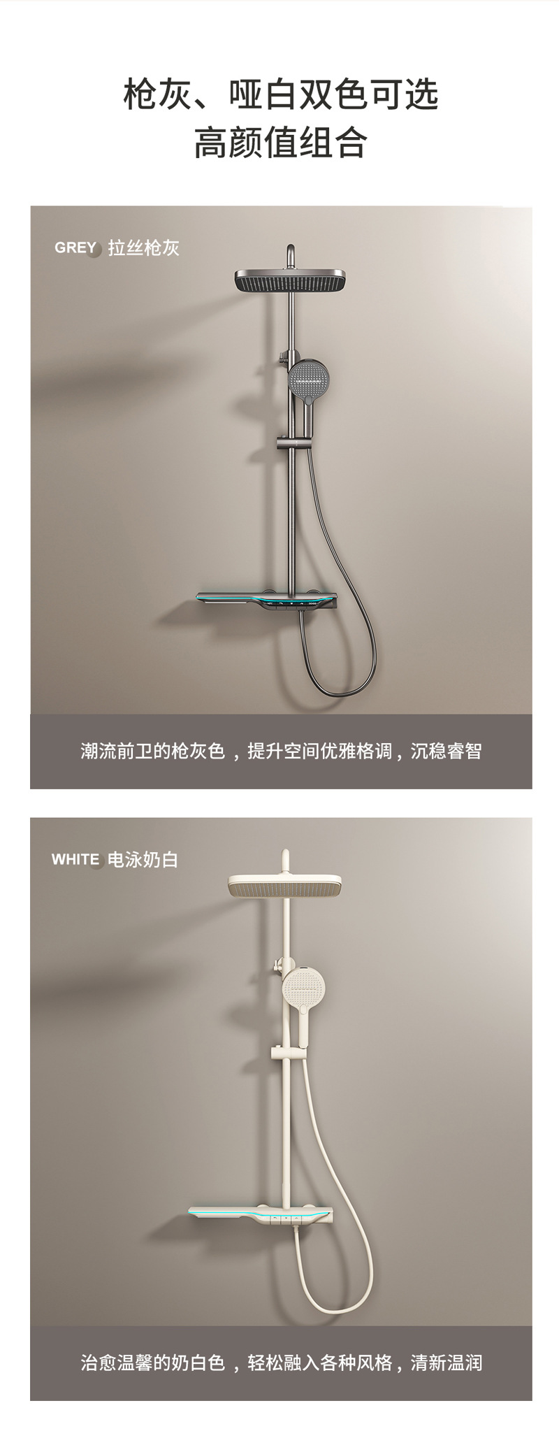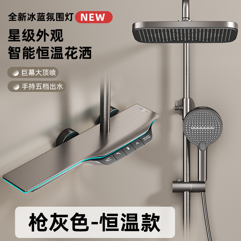 총 회색 피아노 저장 랙 샤워 세트 황동 다기능 디지털 디스플레이 필드 샤워 우유 흰색 온도 조절 샤워