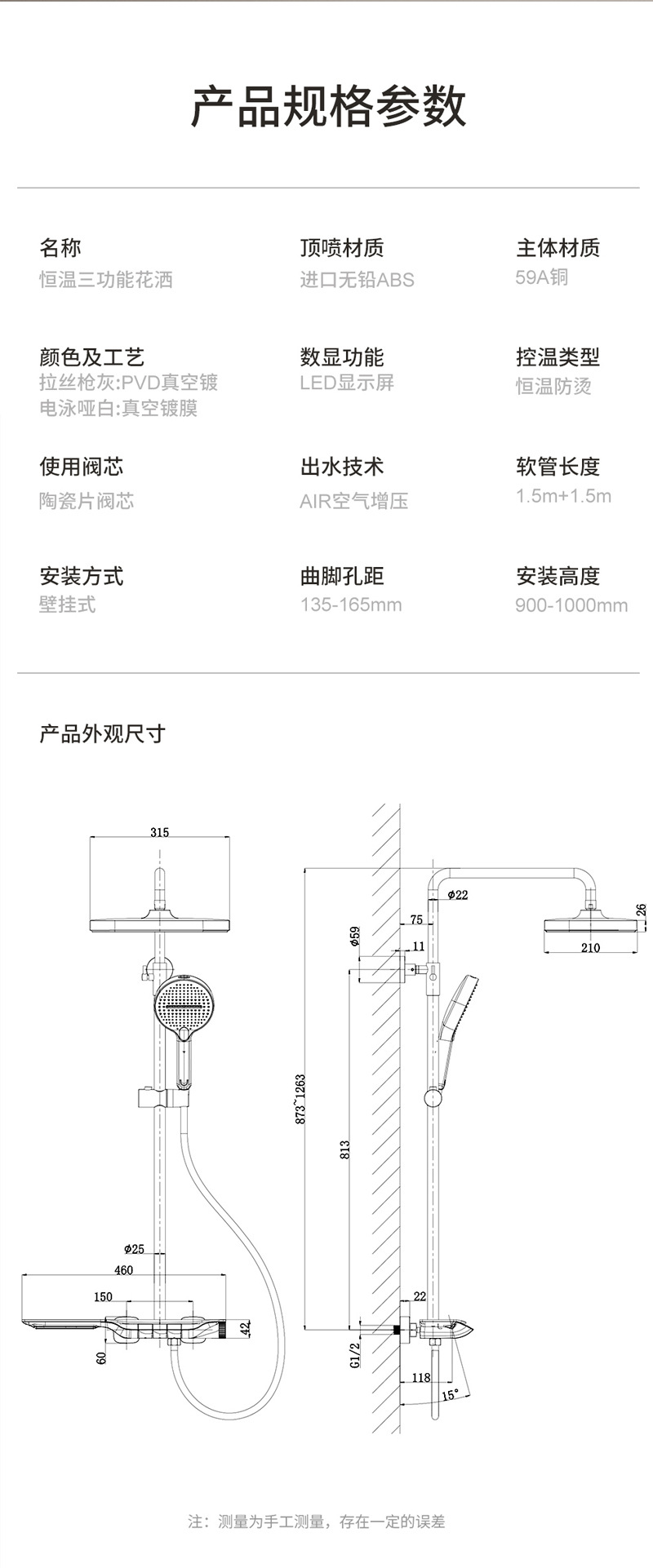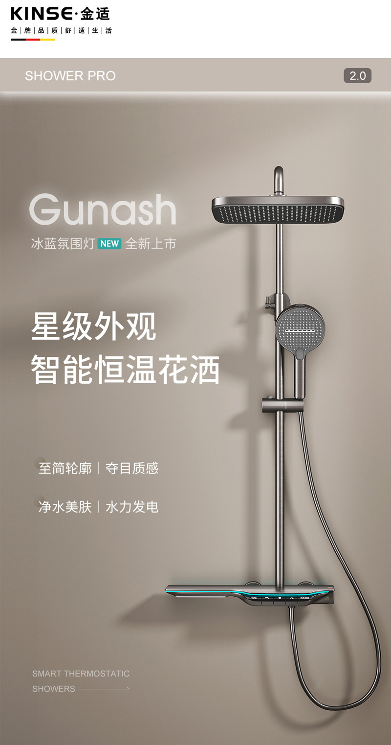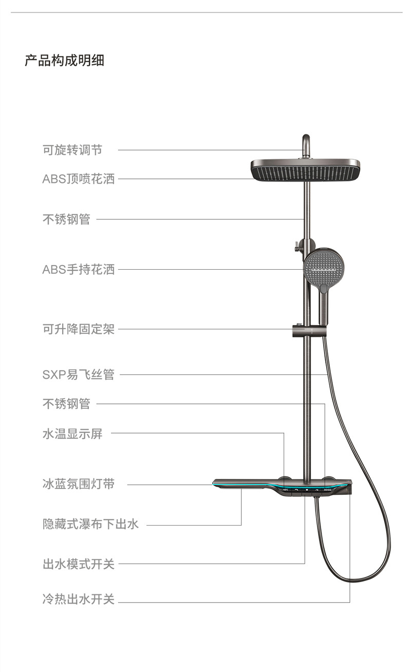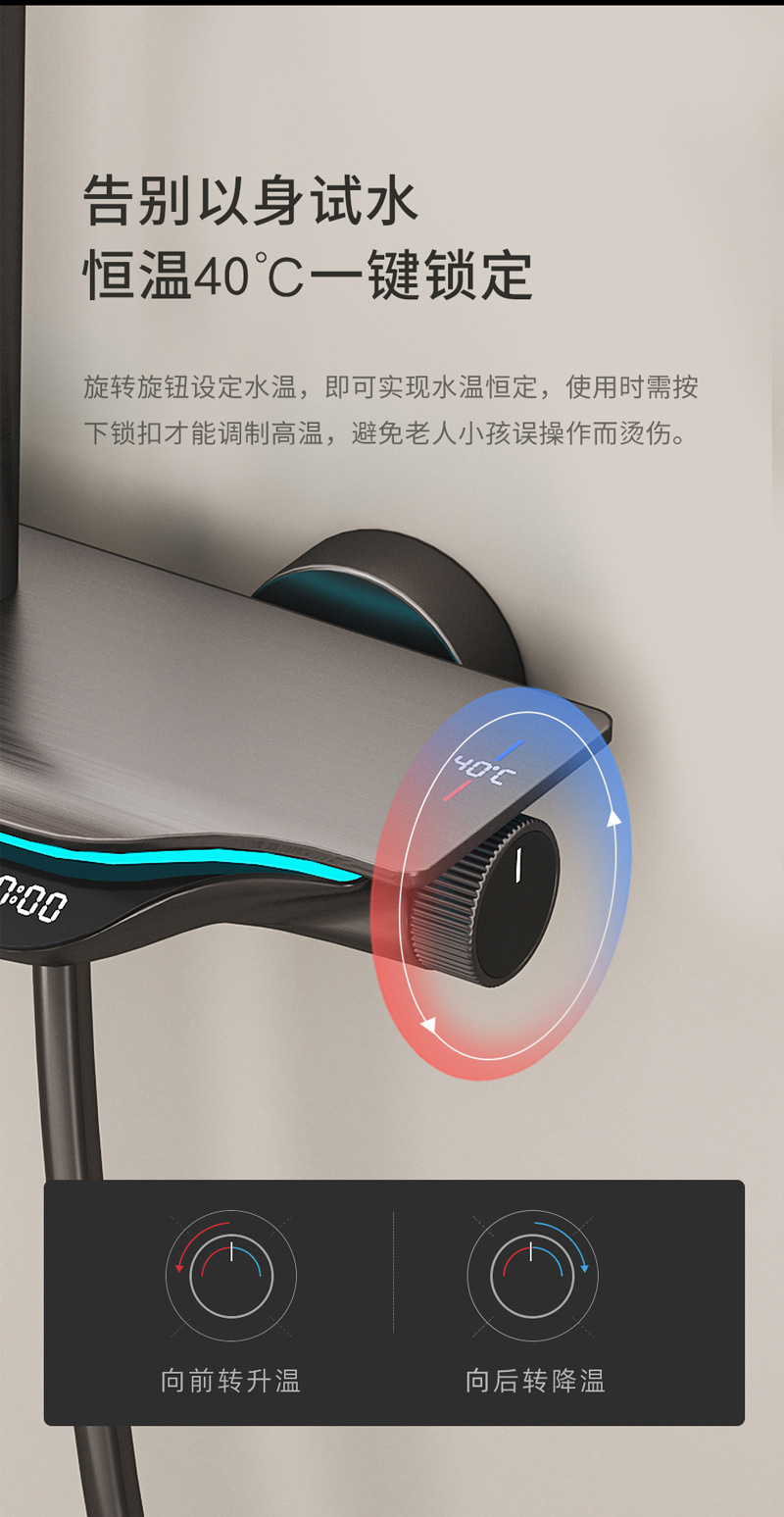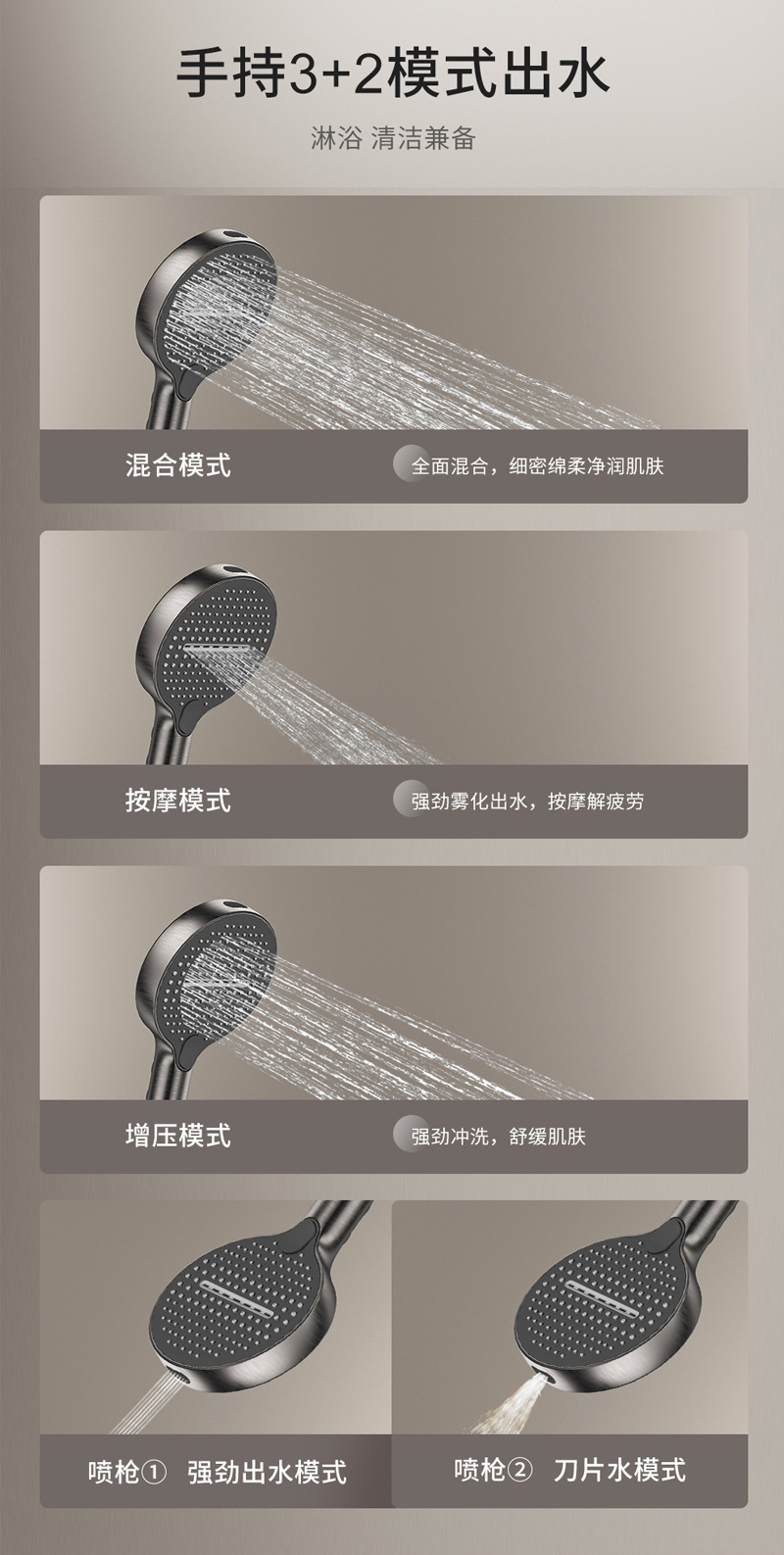 총 회색 피아노 저장 랙 샤워 세트 황동 다기능 디지털 디스플레이 필드 샤워 우유 흰색 온도 조절 샤워