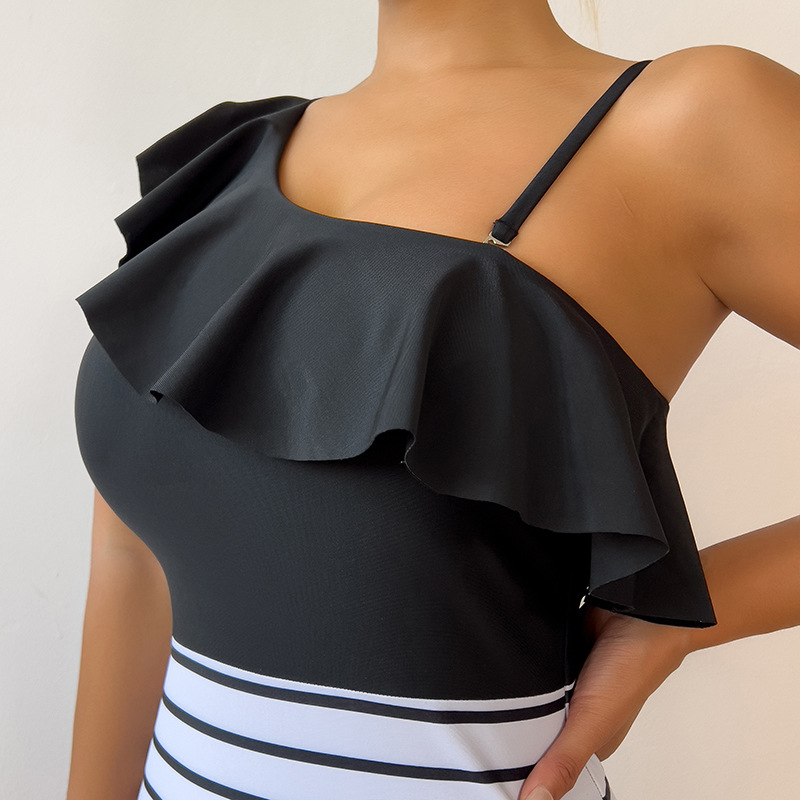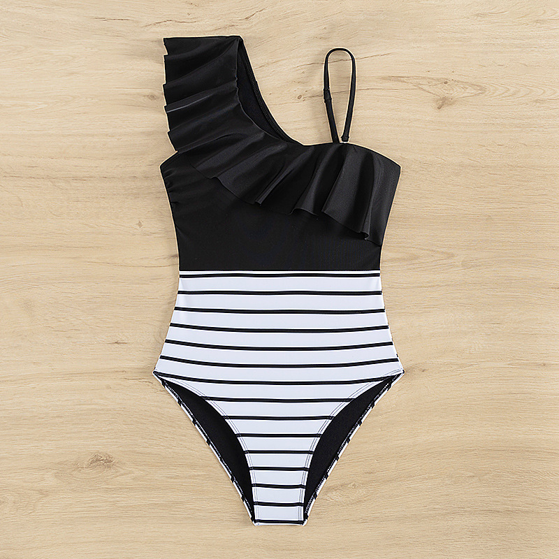 2025 새로운 원피스 수영복 크로스 국경 유럽과 미국 아마존 스트라이프 섹시한 비키니 보수적 인 하이 허리 비키니스토어 가기