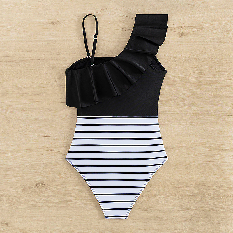 2025 새로운 원피스 수영복 크로스 국경 유럽과 미국 아마존 스트라이프 섹시한 비키니 보수적 인 하이 허리 비키니