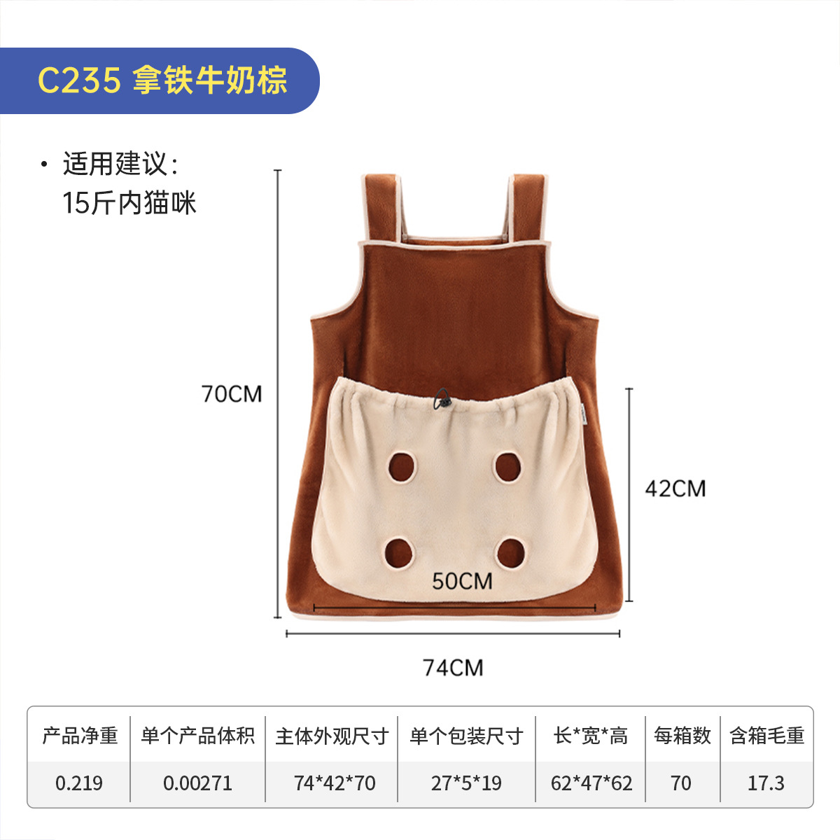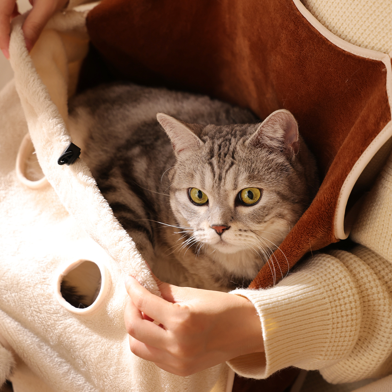 • 라떼 밀크 브라운 [1마리 고양이에게 적합 + 대용량 + 뒷면 조절 가능 + 머리카락에 달라붙기 쉽지 않음 + 턱받이 오픈 홀 디자인]