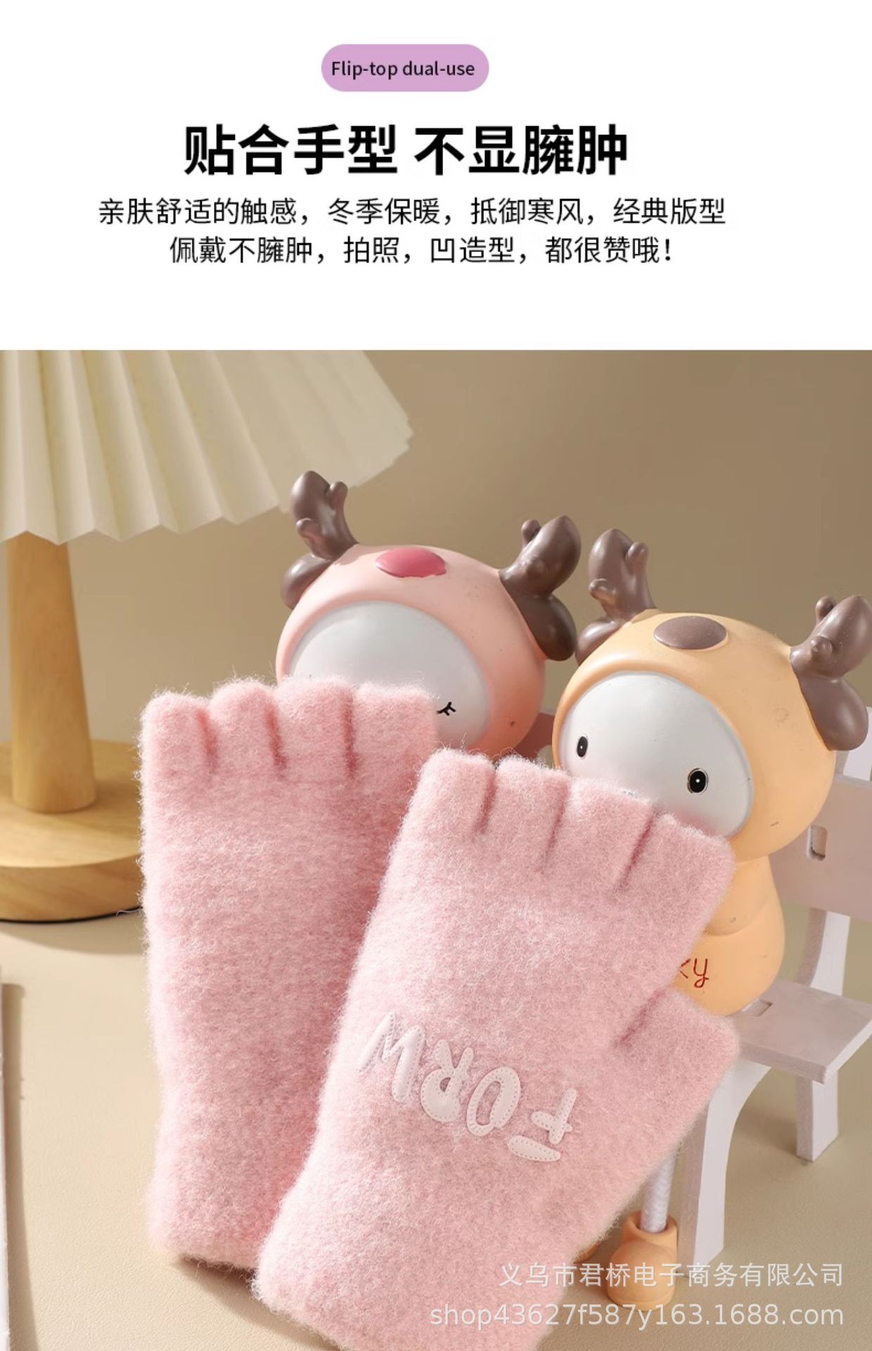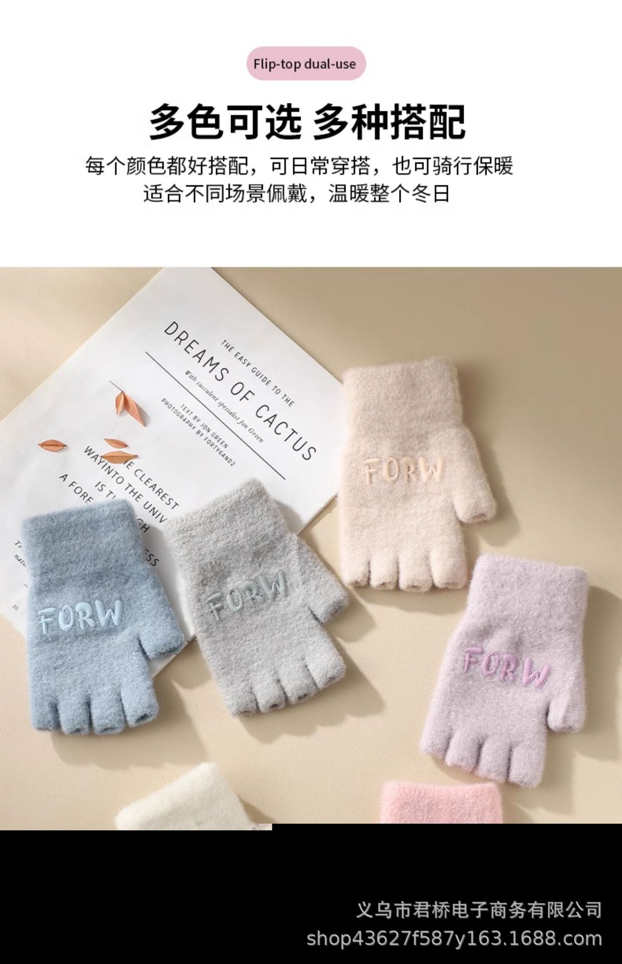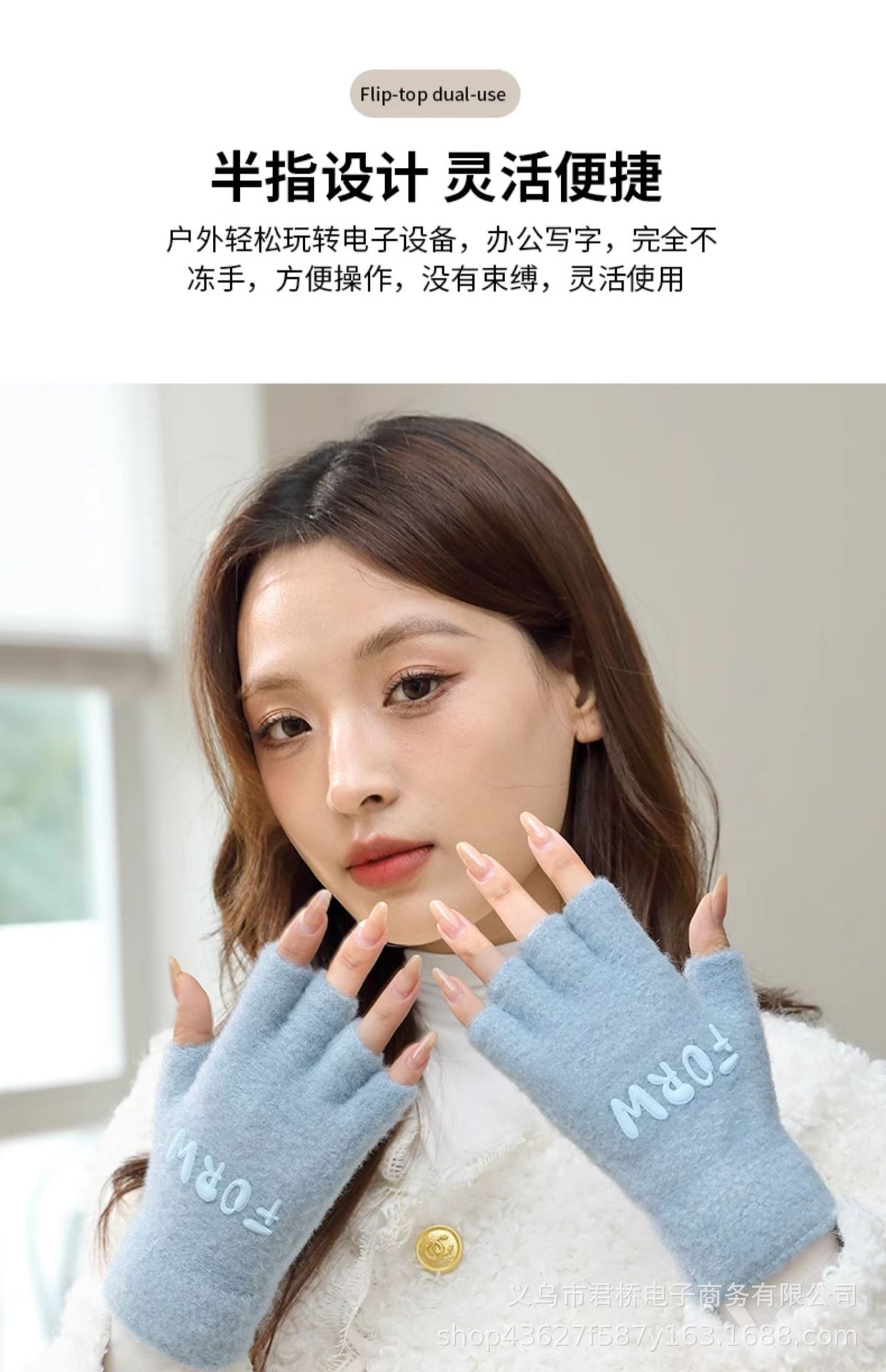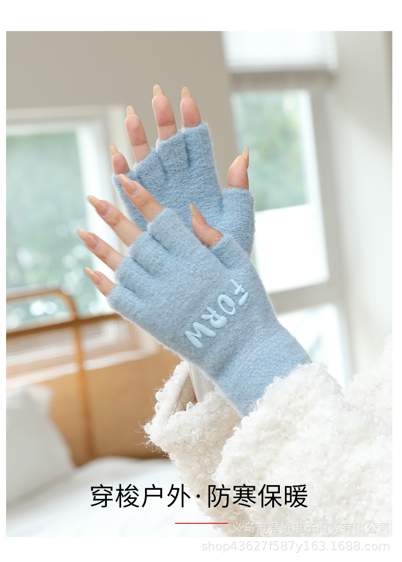 하프 핑거 장갑 겨울 여성의 2024 새로운 양모 니트 듀 하프 워크 운전 따뜻한 학생들의 글쓰기 동결 방지