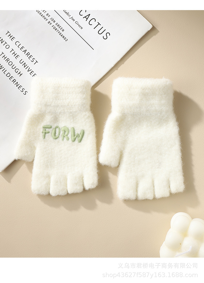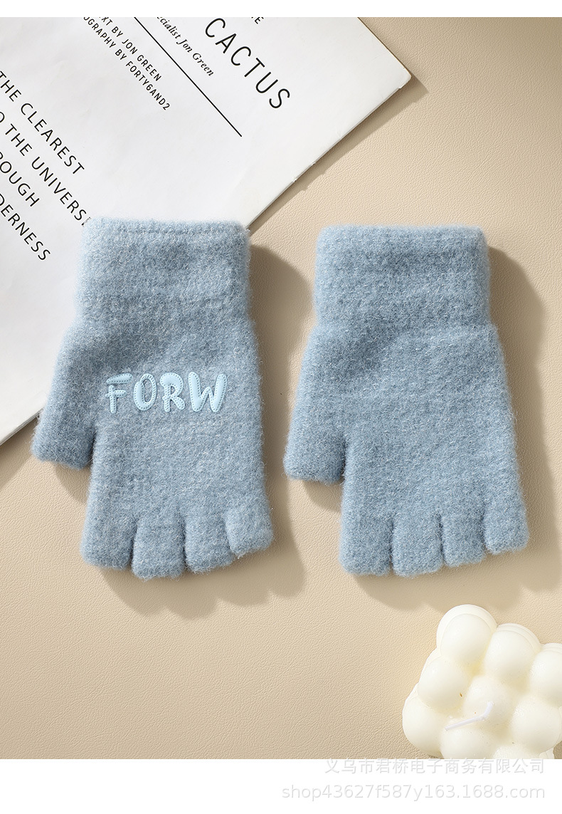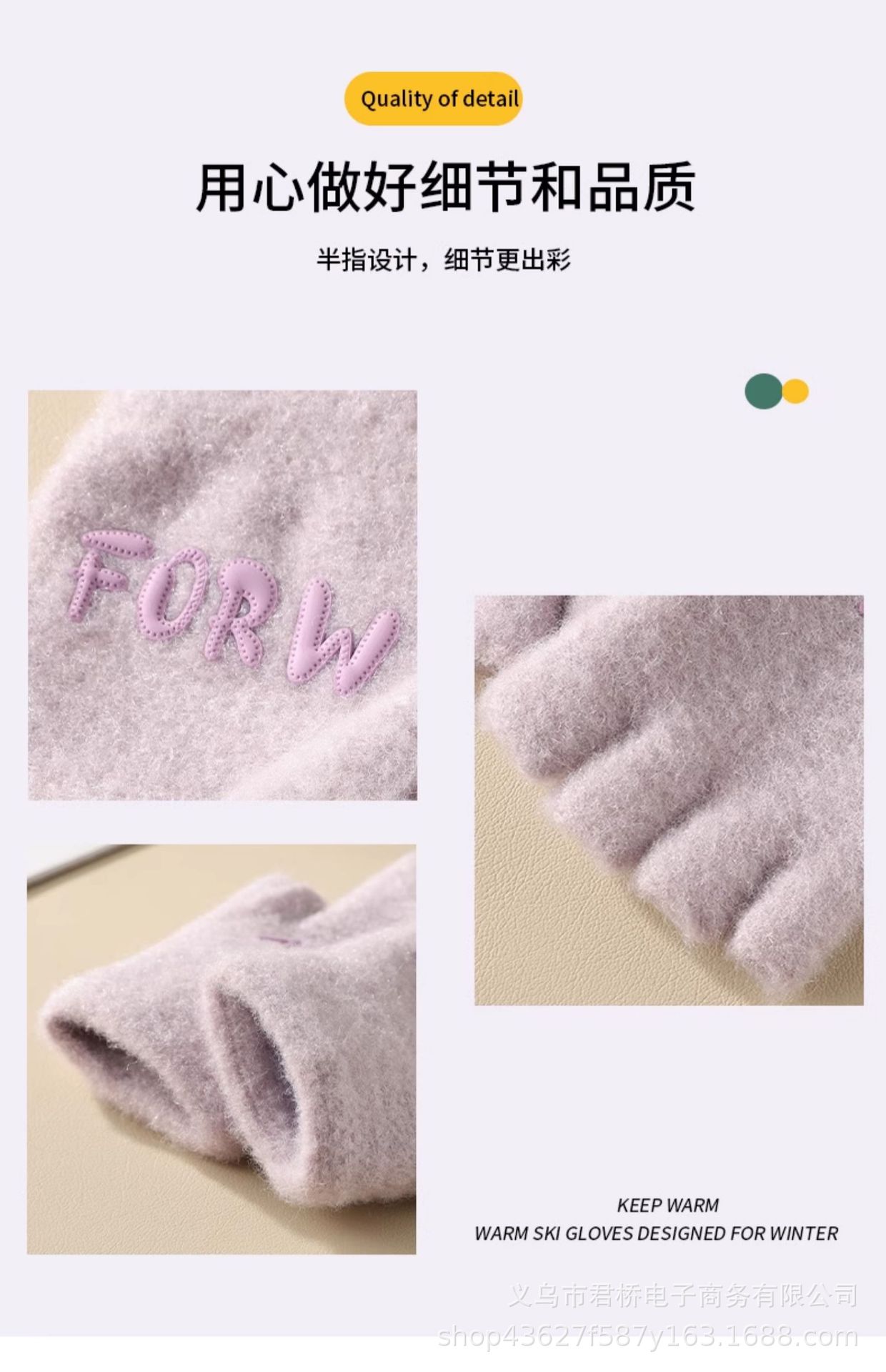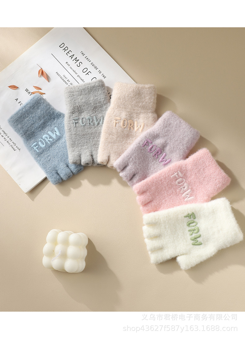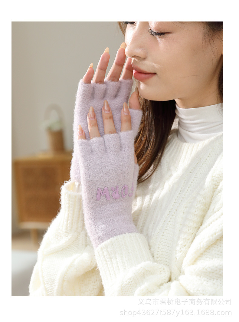 하프 핑거 장갑 겨울 여성의 2024 새로운 양모 니트 듀 하프 워크 운전 따뜻한 학생들의 글쓰기 동결 방지