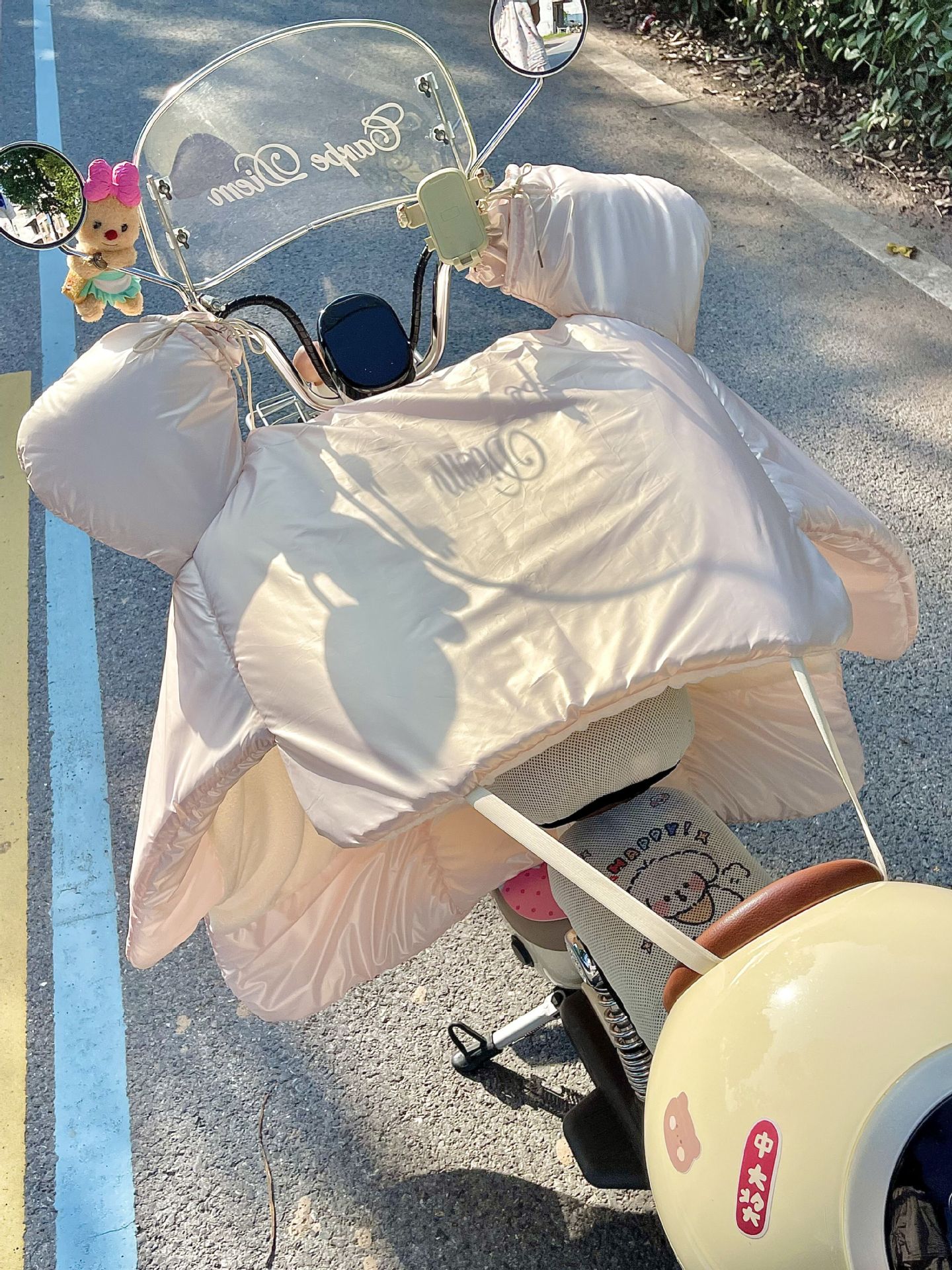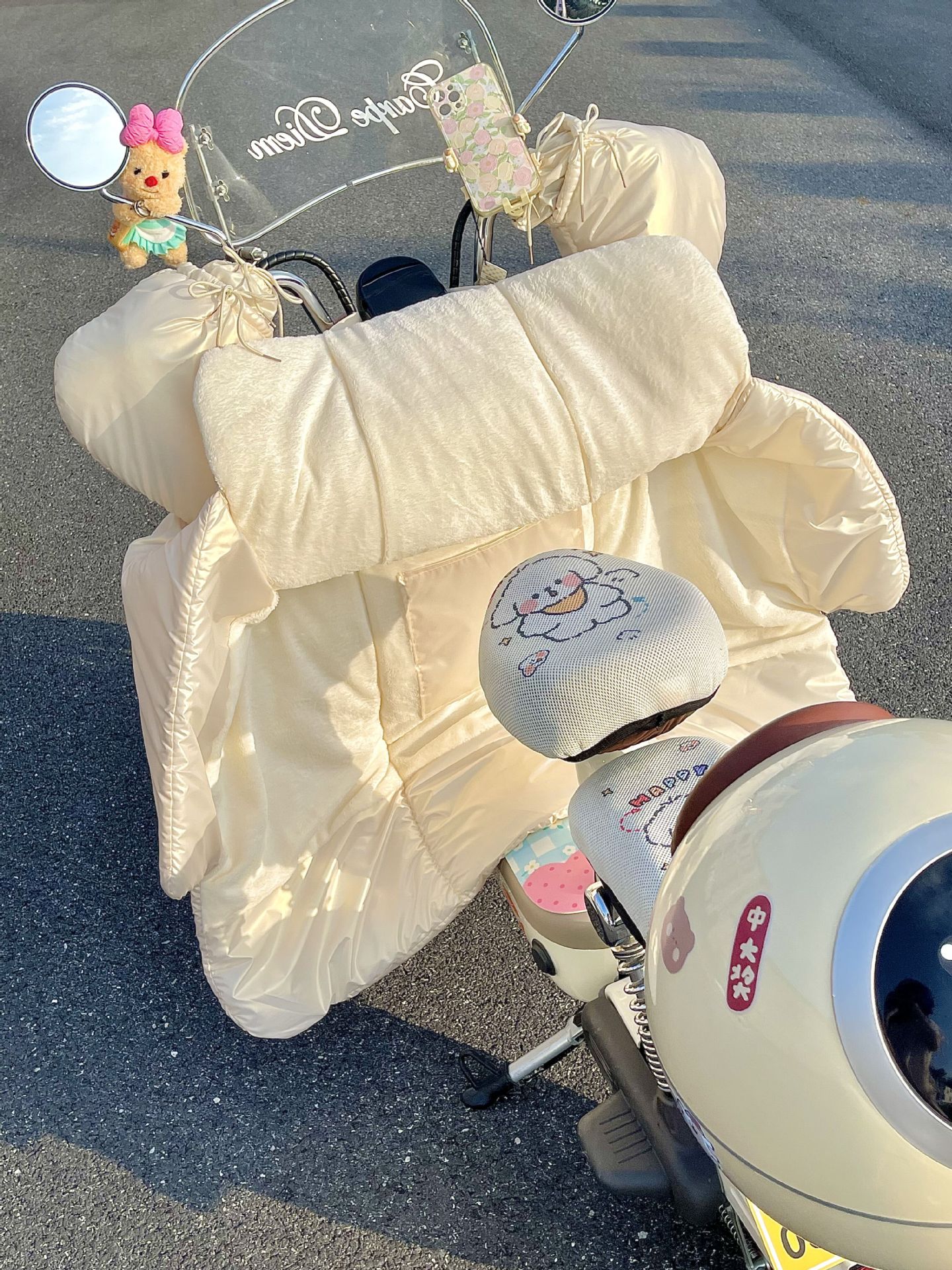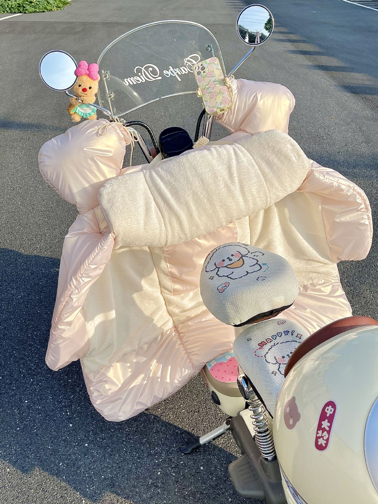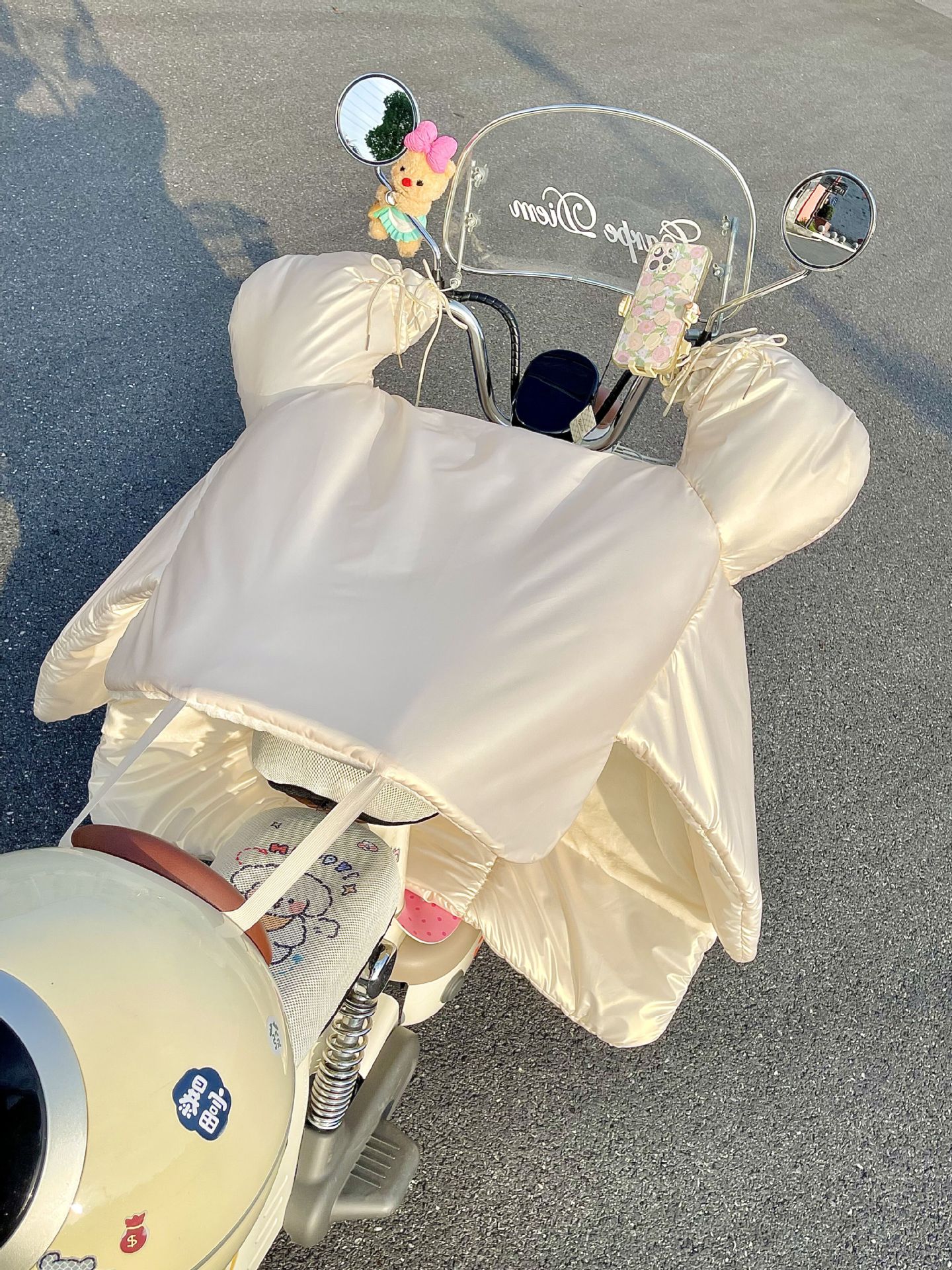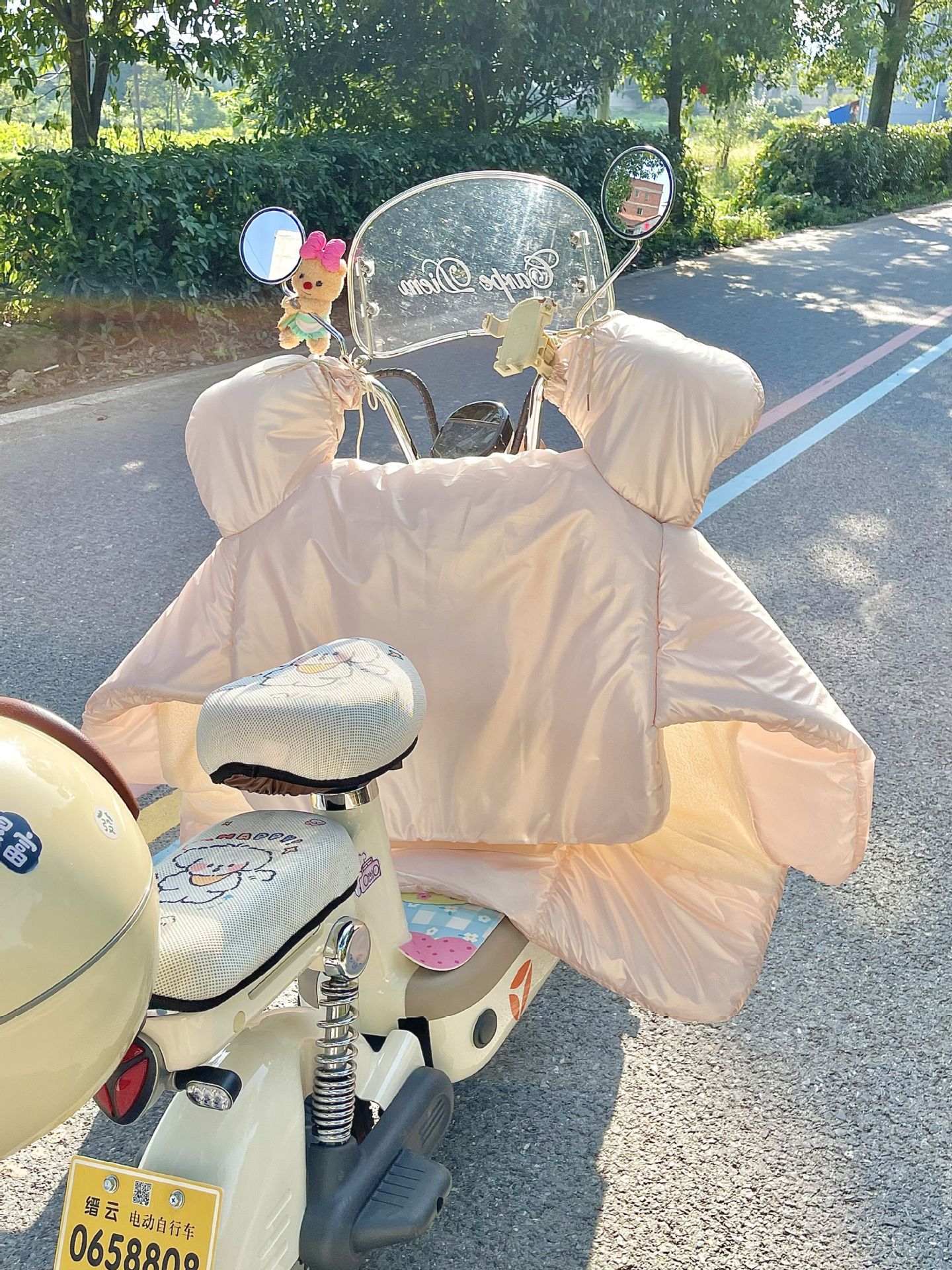 앞 유리 퀼터 겨울 방풍 따뜻한 사계절 보편적 인 기모 두꺼운 방비 귀여운 해바라기 오토바이 콜드 커버