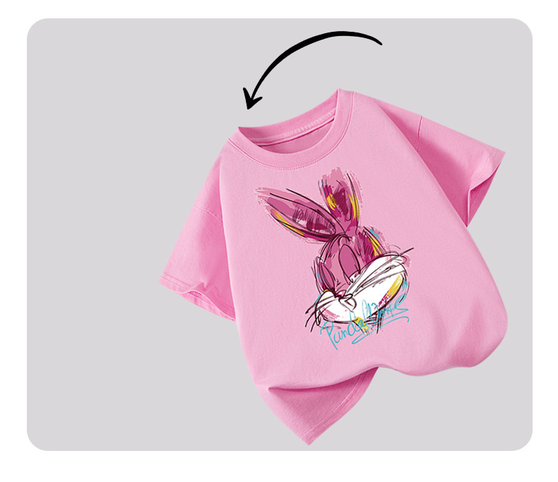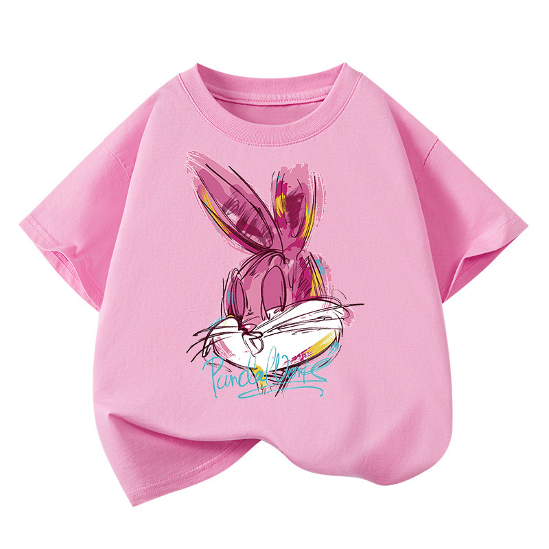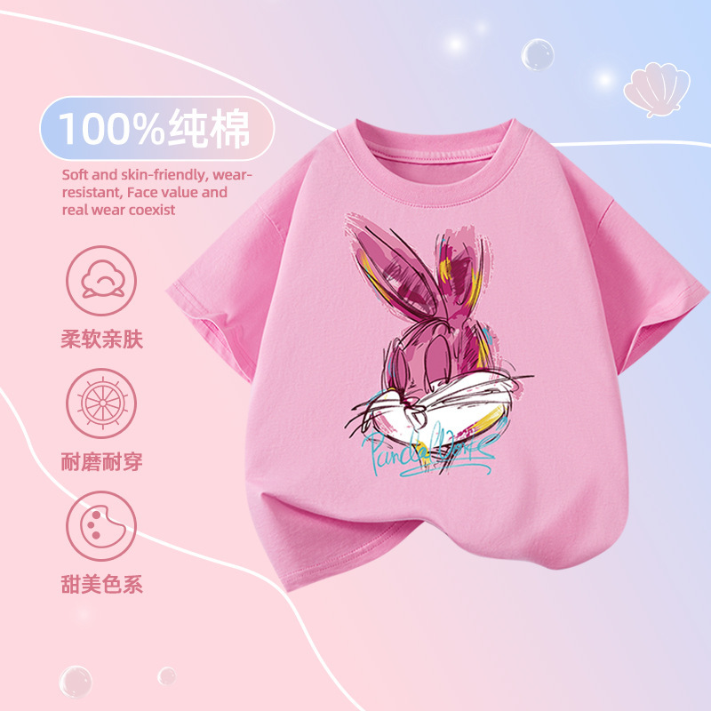 도매 2025 새로운 스타일 여자 어린이 반팔 티셔츠 순수 코튼 여름 스타일 탑 중간 어린이 유행 라운드 넥 반팔