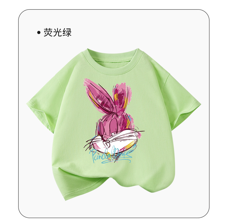 도매 2025 새로운 스타일 여자 어린이 반팔 티셔츠 순수 코튼 여름 스타일 탑 중간 어린이 유행 라운드 넥 반팔스토어 가기