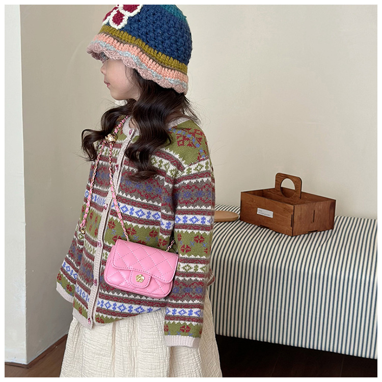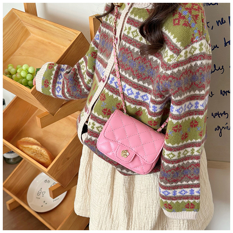 소녀 가방 어린이 패션 귀여운 미니 샤넬 스타일 크로스 백 마름모꼴 체인 백 동백 공주 작은 가방