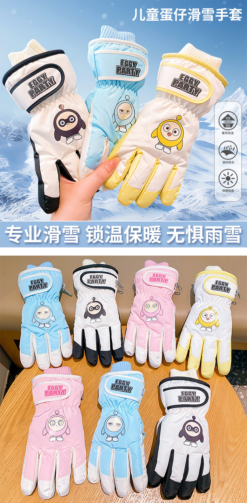 어린이 아기 정품 만화 에그 스키 장갑 겨울 여아 감기 방지 따뜻한 방첩 방수 다섯 손가락 장갑스토어 가기