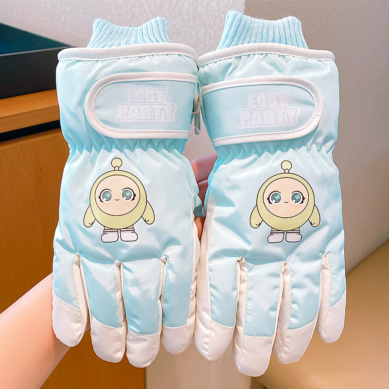 어린이 아기 정품 만화 에그 스키 장갑 겨울 여아 감기 방지 따뜻한 방첩 방수 다섯 손가락 장갑
