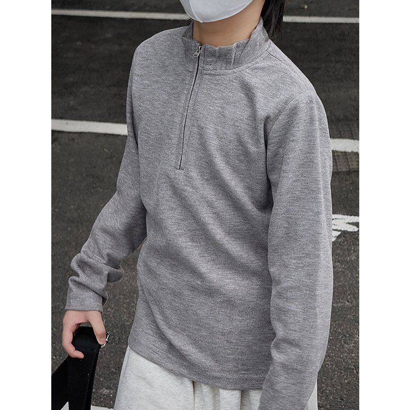 Baoduo 아동복 소년 스탠드 칼라 티셔츠 가을, 겨울 아동용 하프 지퍼 풀오버 니트 바닥 100-170 트렌디 탑