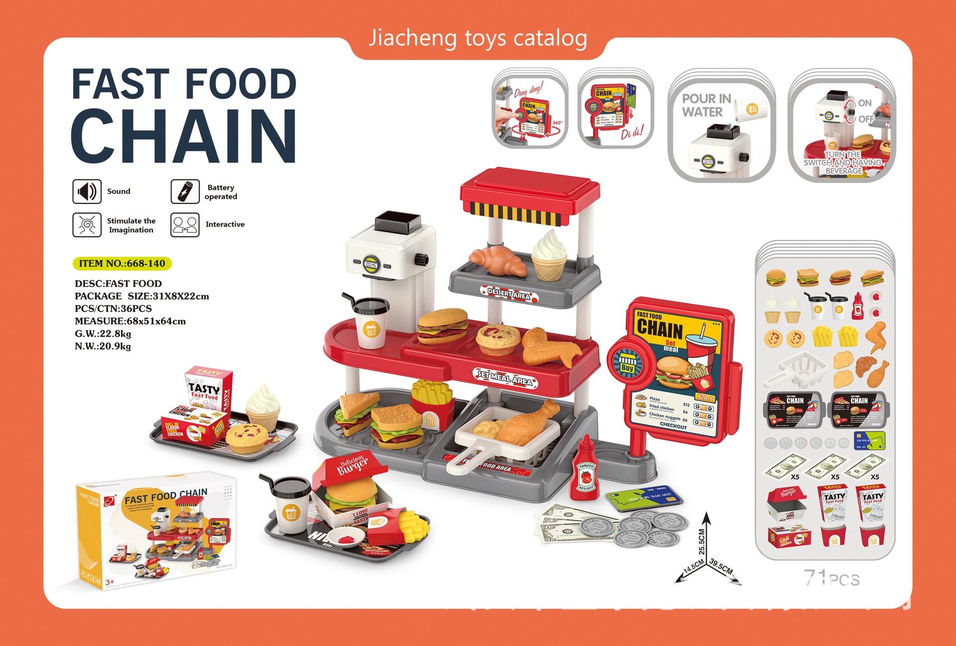 • 668-140 미니 패스트푸드 세트(물 배출 기능, 소리 포함)