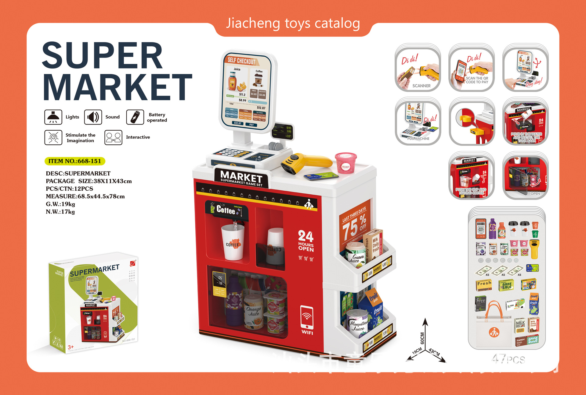 • 668-69 고급스러운 슈퍼마켓 쇼핑 콤보 세트(소리와 빛 포함)