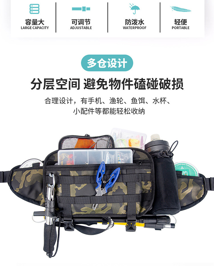 루야 가방 남자의 다기능 낚시 가방 추기경 위장 야외 한 어깨 크로스 바디 루야 휴대 전화 방수 물 주전자 허리 가방