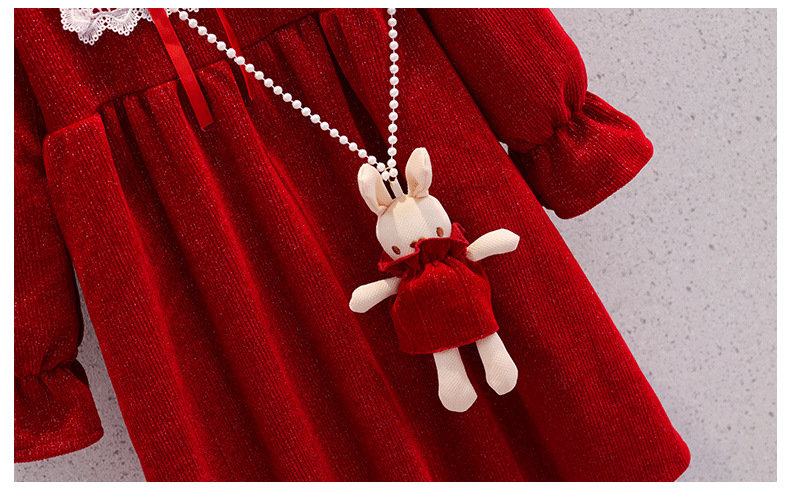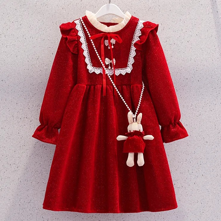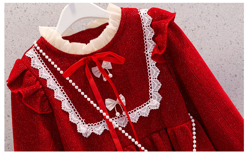 여자 원피스 가을 겨울 새로운 한국 스타일 큰 아이들 빨간 두꺼운 신년 옷 여자 세련된 공주 원피스스토어 가기