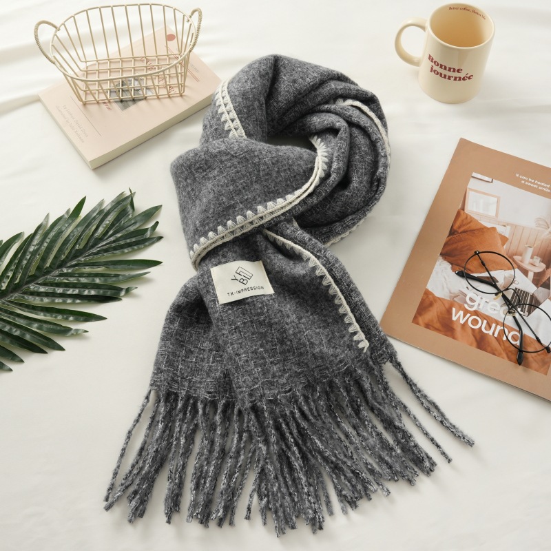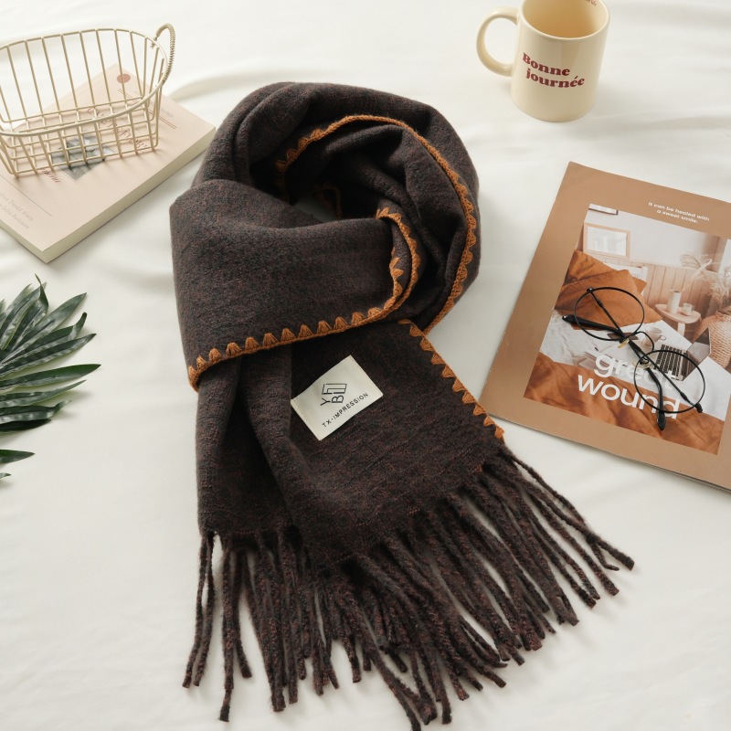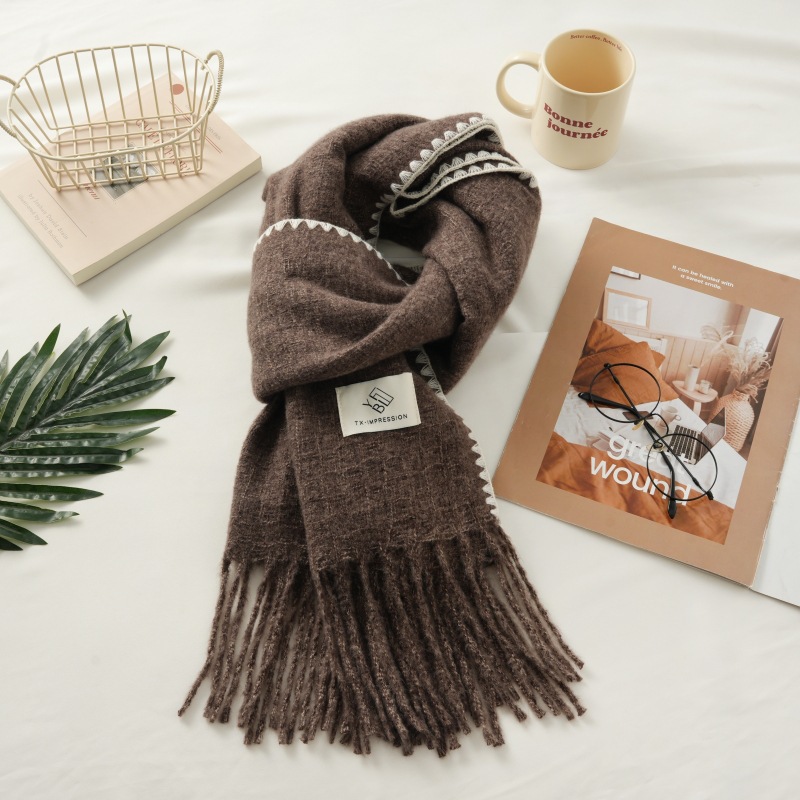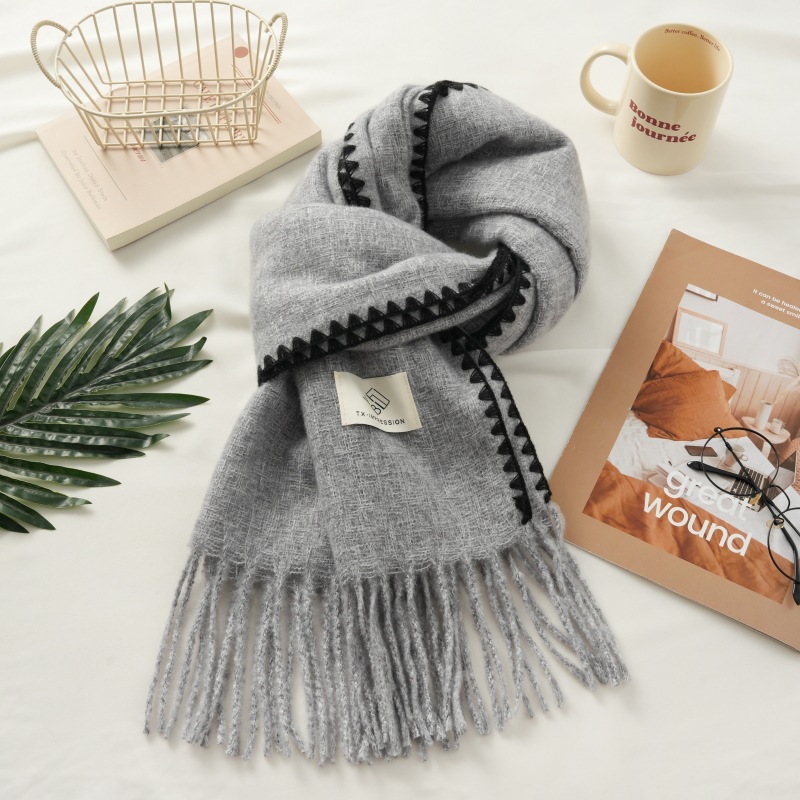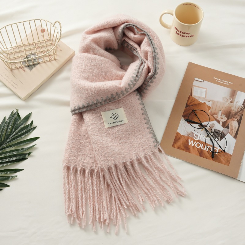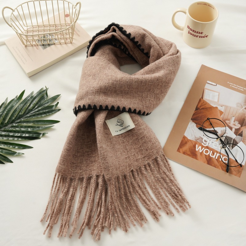 작은 향기로운 스타일 in 스카프 여성의 가을과 겨울 2024 새로운 한국어 버전의 잠금 가장자리 조커 따뜻한 스카프 재고 공장 배치스토어 가기