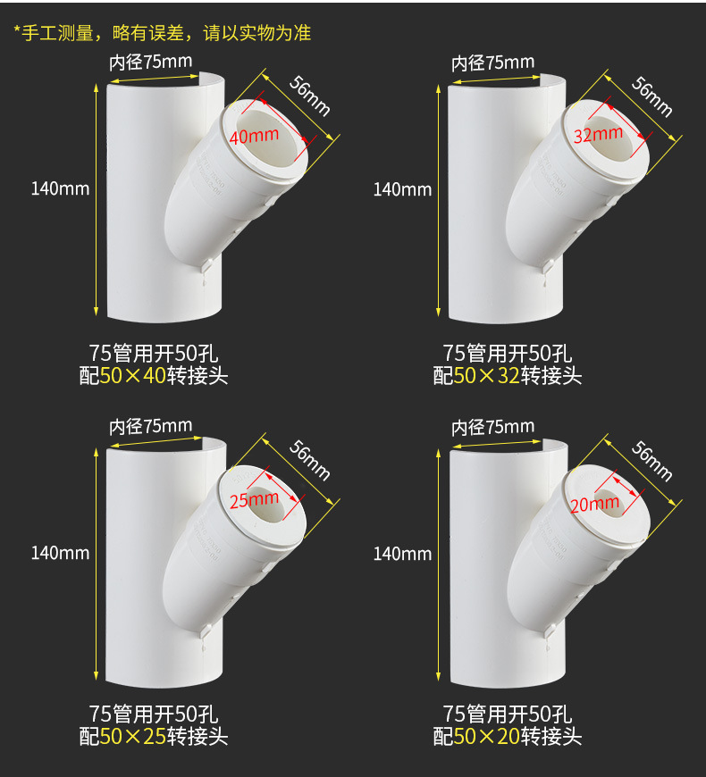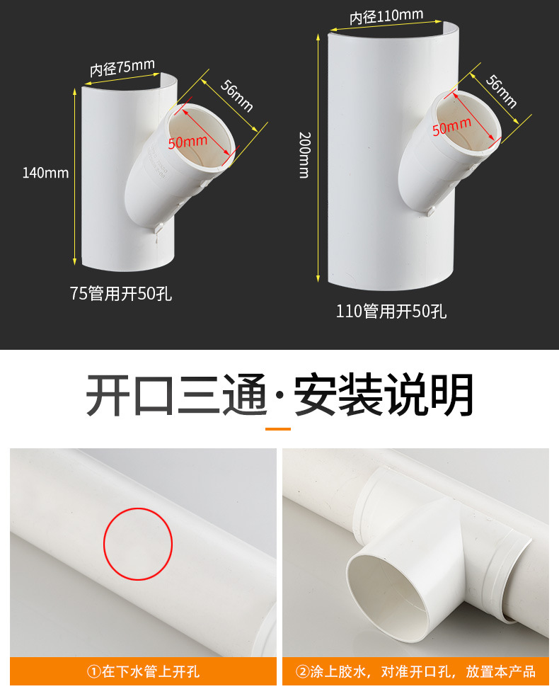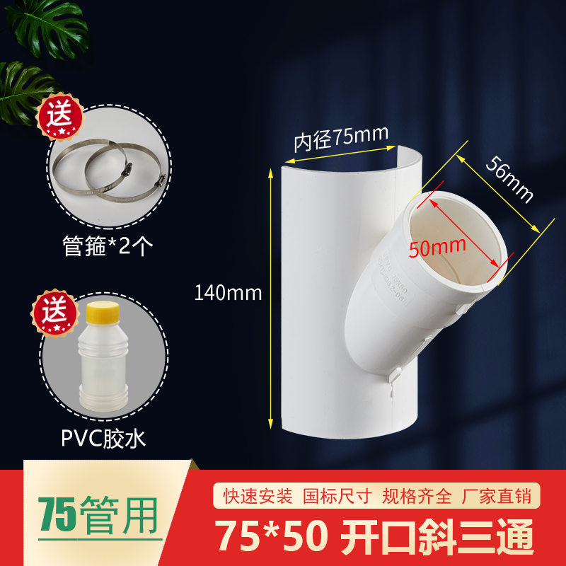 오픈 티 PVC 드레인 파이프 누출 패치 75 감속기 50 Haff 조인트 피팅 비상 수리 비스듬한 티 어댑터 110스토어 가기