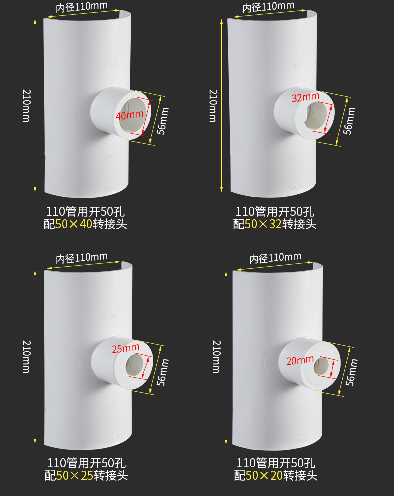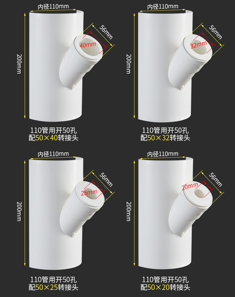 오픈 티 PVC 드레인 파이프 누출 패치 75 감속기 50 Haff 조인트 피팅 비상 수리 비스듬한 티 어댑터 110