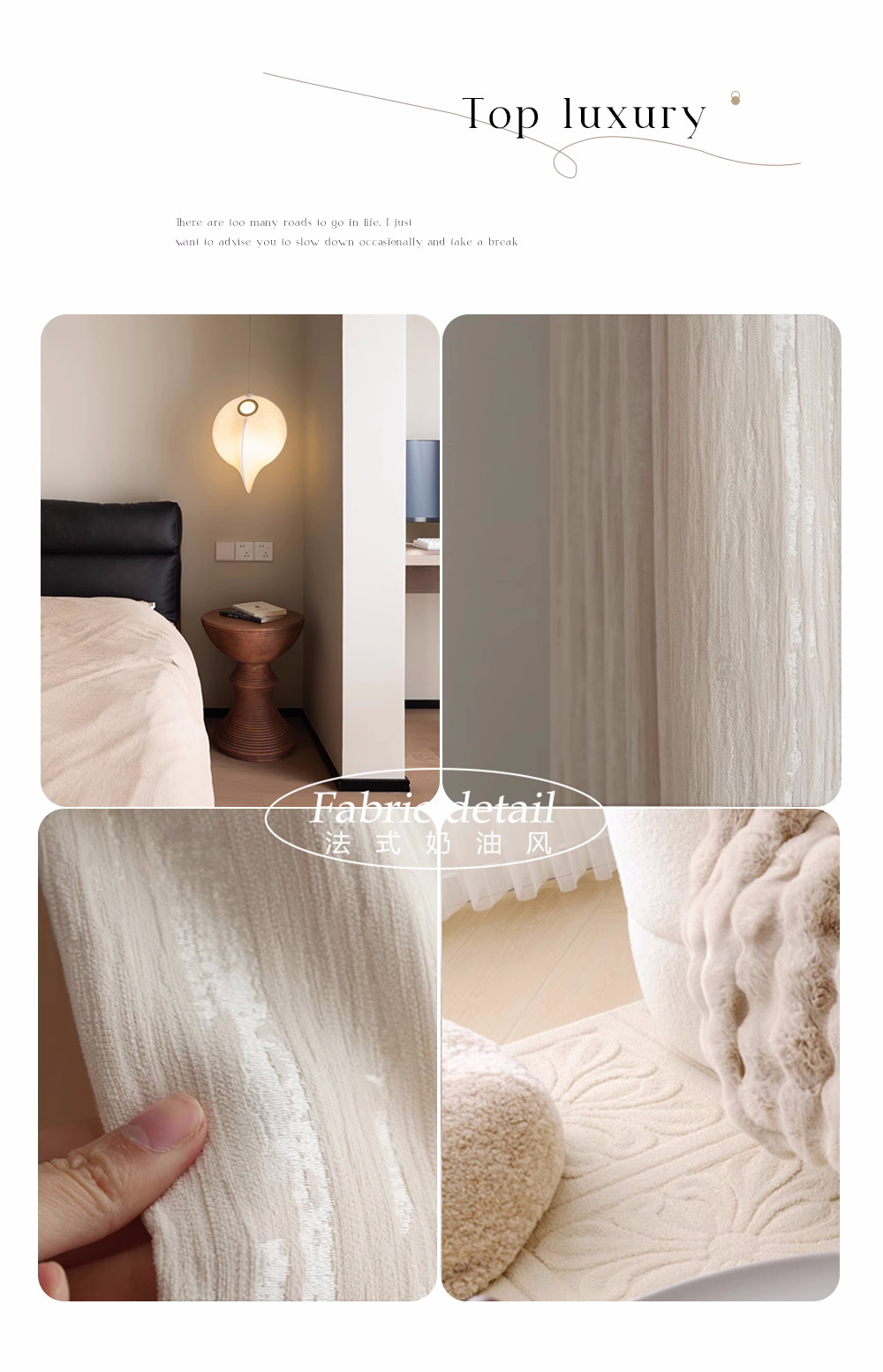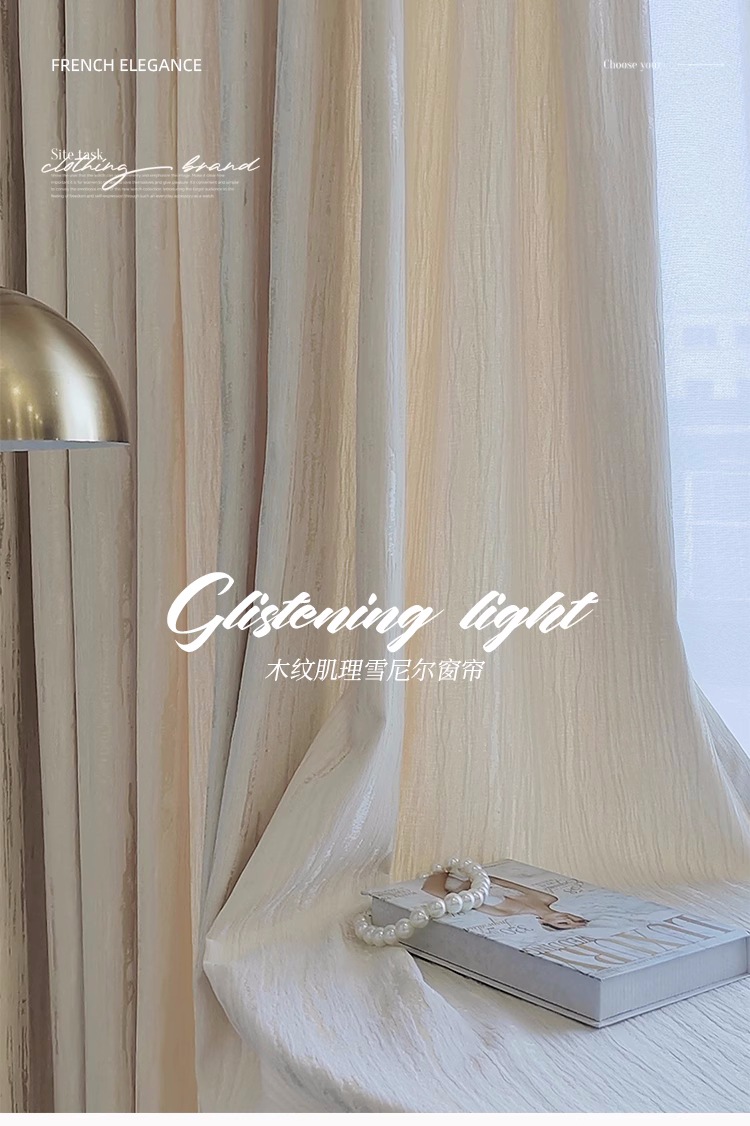 골든 에이지 프렌치 크림 스타일 거실 침실 라이트 우드 그레인 자카드 체닐 커튼 라이트 럭셔리 쉐이딩 완료