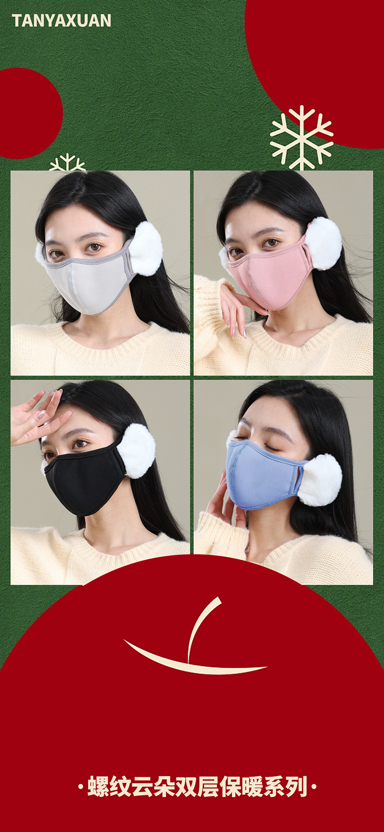 폭발성 구름 따뜻한 마스크 가을과 겨울 투인원 여성 방풍 방추위 봉제 기모 귀 마스크 보호 승마 마스크