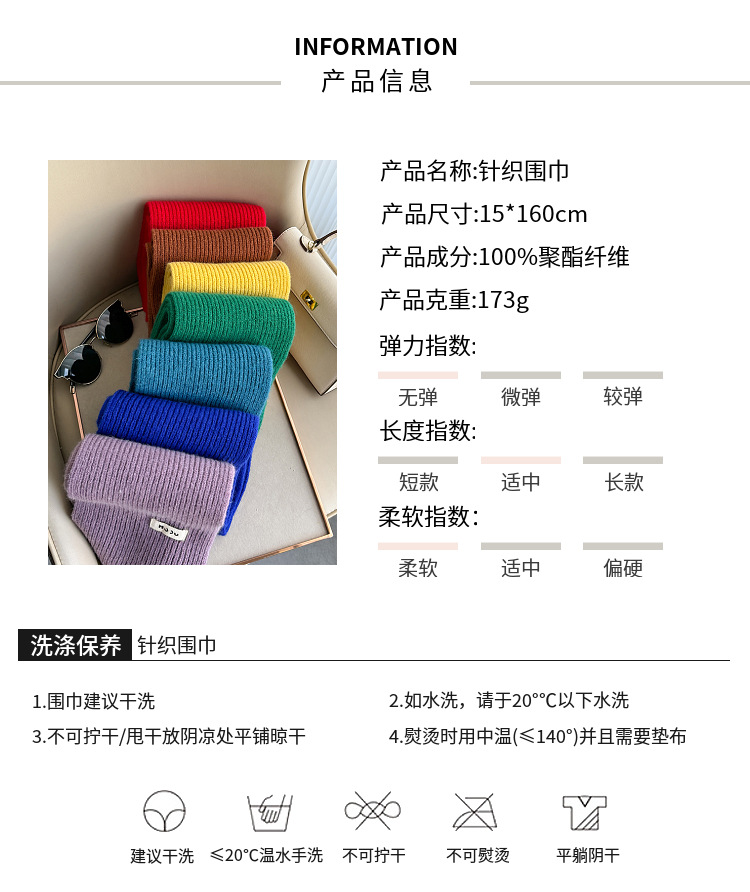 가을과 겨울 새로운 니트 스카프 여성 패션 클래식 솔리드 컬러 올 매치 스카프 간단한 한국 스타일 두꺼운 따뜻한 작은 스카프스토어 가기