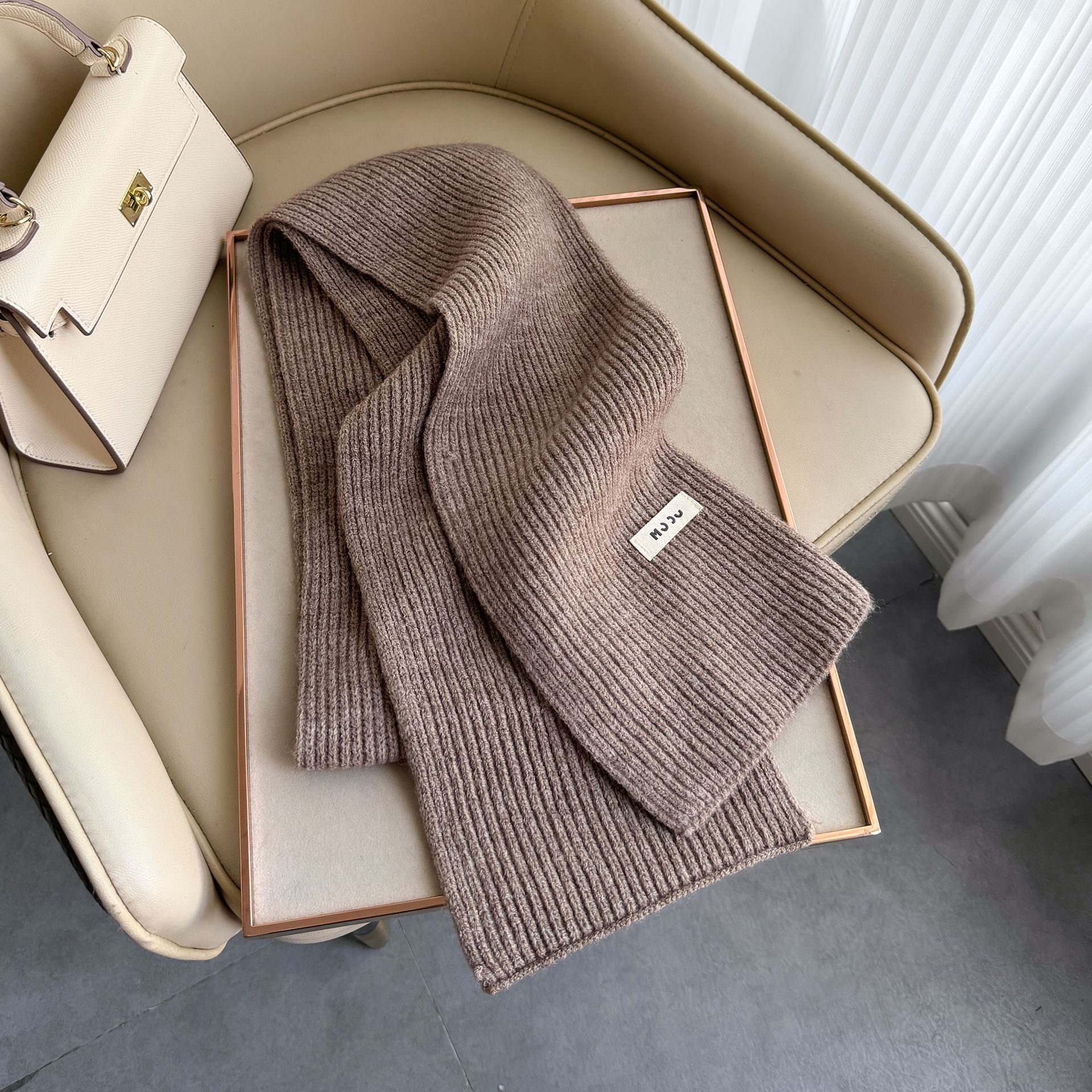 가을과 겨울 새로운 니트 스카프 여성 패션 클래식 솔리드 컬러 올 매치 스카프 간단한 한국 스타일 두꺼운 따뜻한 작은 스카프