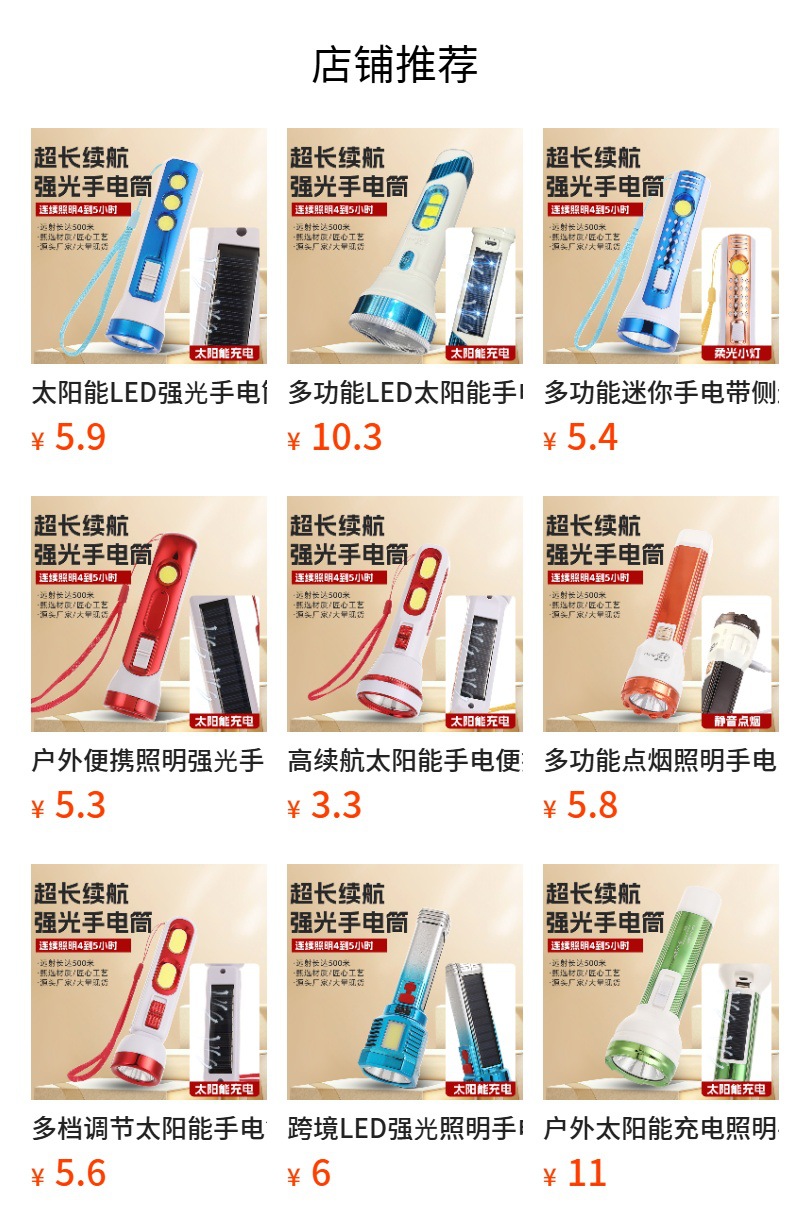 태양열 충전식 캠핑 손전등 다기능 강한 빛 휴대용 LED 손전등 야외 높은 배터리 수명 조명 도구스토어 가기