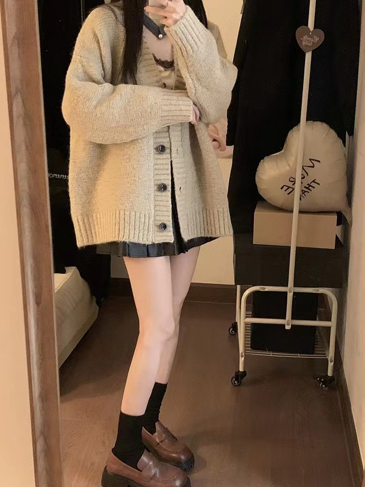 [두꺼운 대형 버전] 2024 새로운 니트 카디건 스웨터 여성의 가을 부드러운 왁스 V-Neck 느슨한 게으른 스타일 코트스토어 가기
