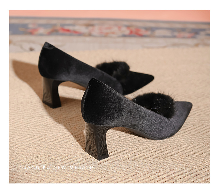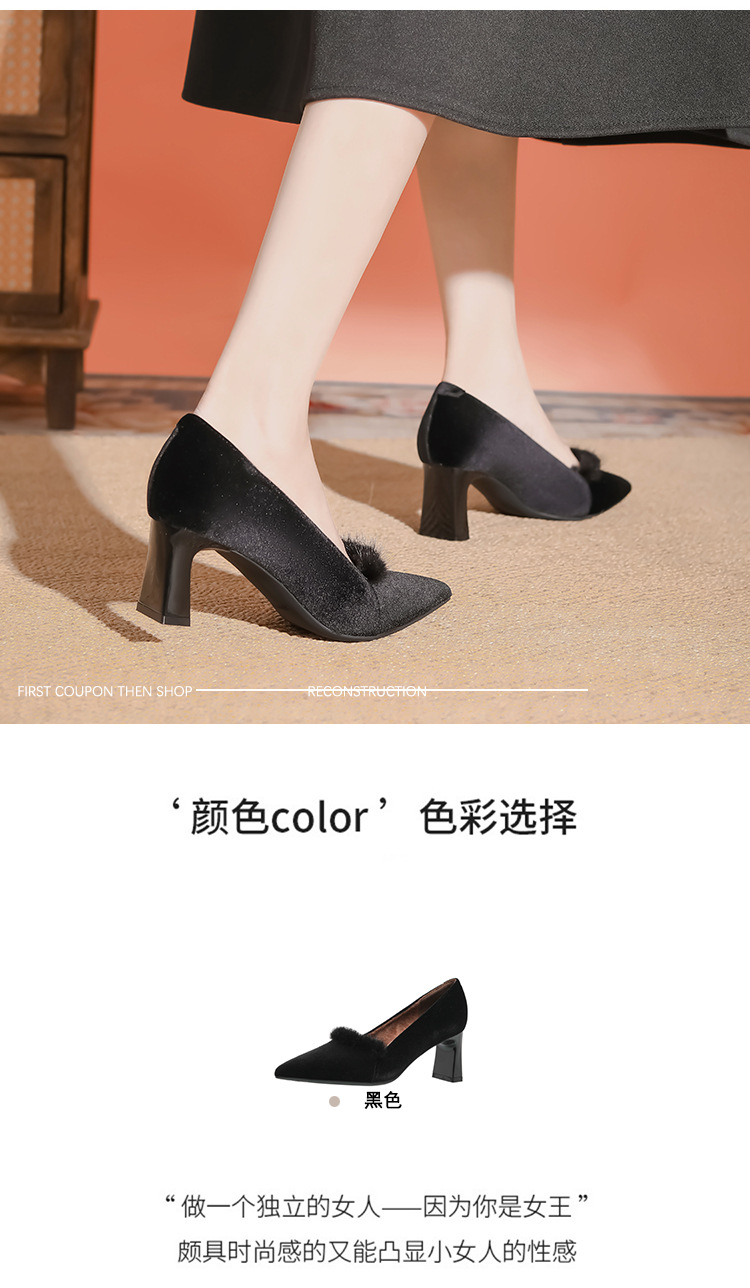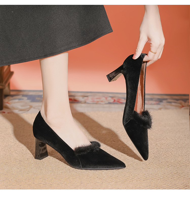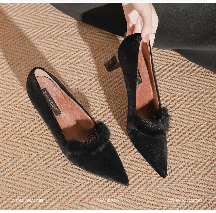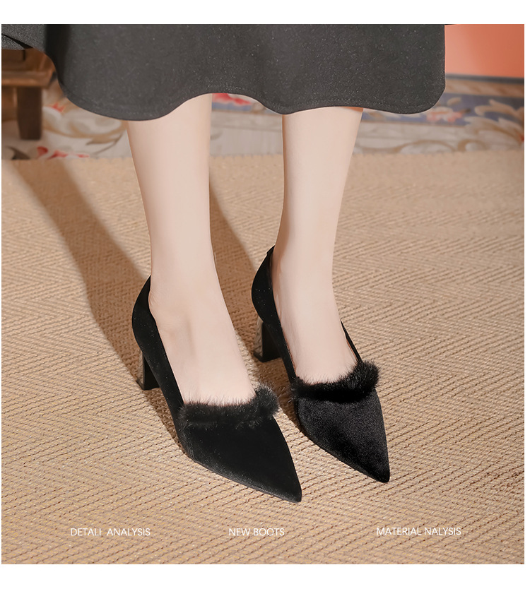 섹시한 스웨이드 굵은 뒤꿈치 신발 여자 겨울 올매치 간단한 푹신한 기모 하이힐 피곤하지 않은 전문 여성 신발스토어 가기