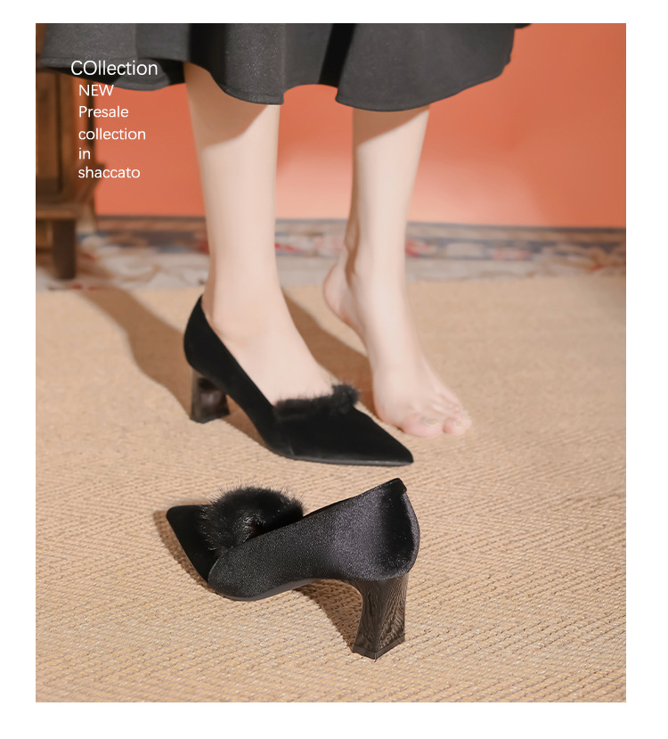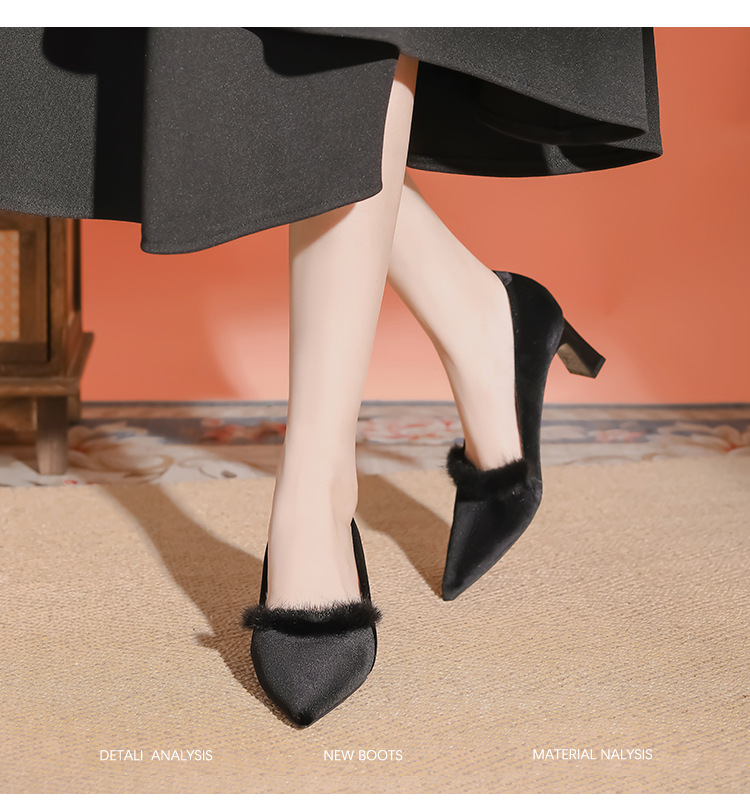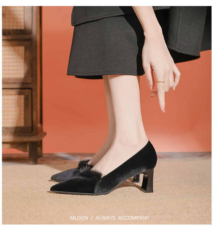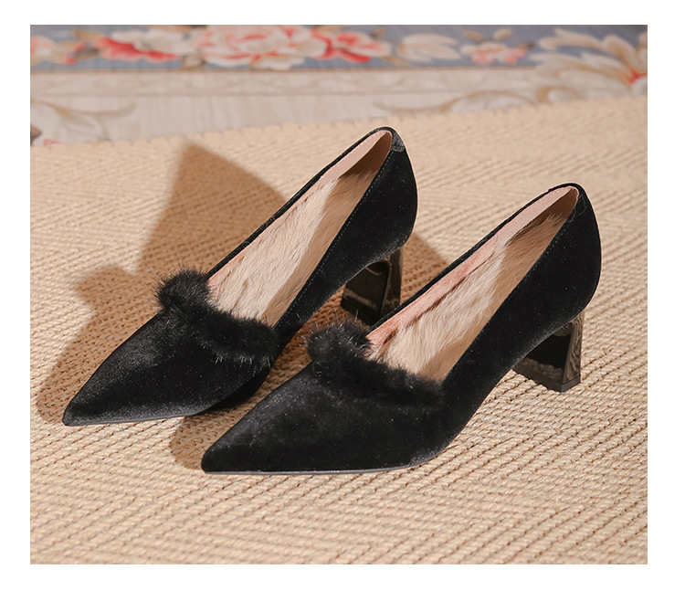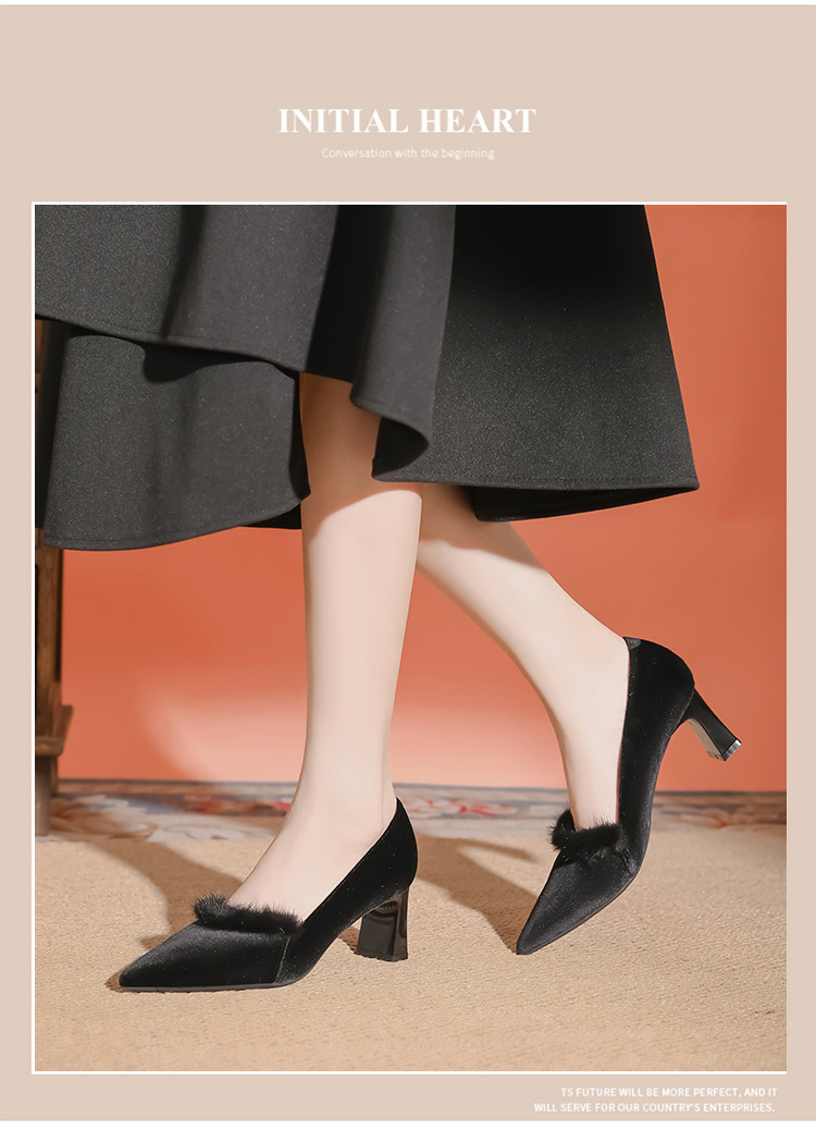 섹시한 스웨이드 굵은 뒤꿈치 신발 여자 겨울 올매치 간단한 푹신한 기모 하이힐 피곤하지 않은 전문 여성 신발스토어 가기