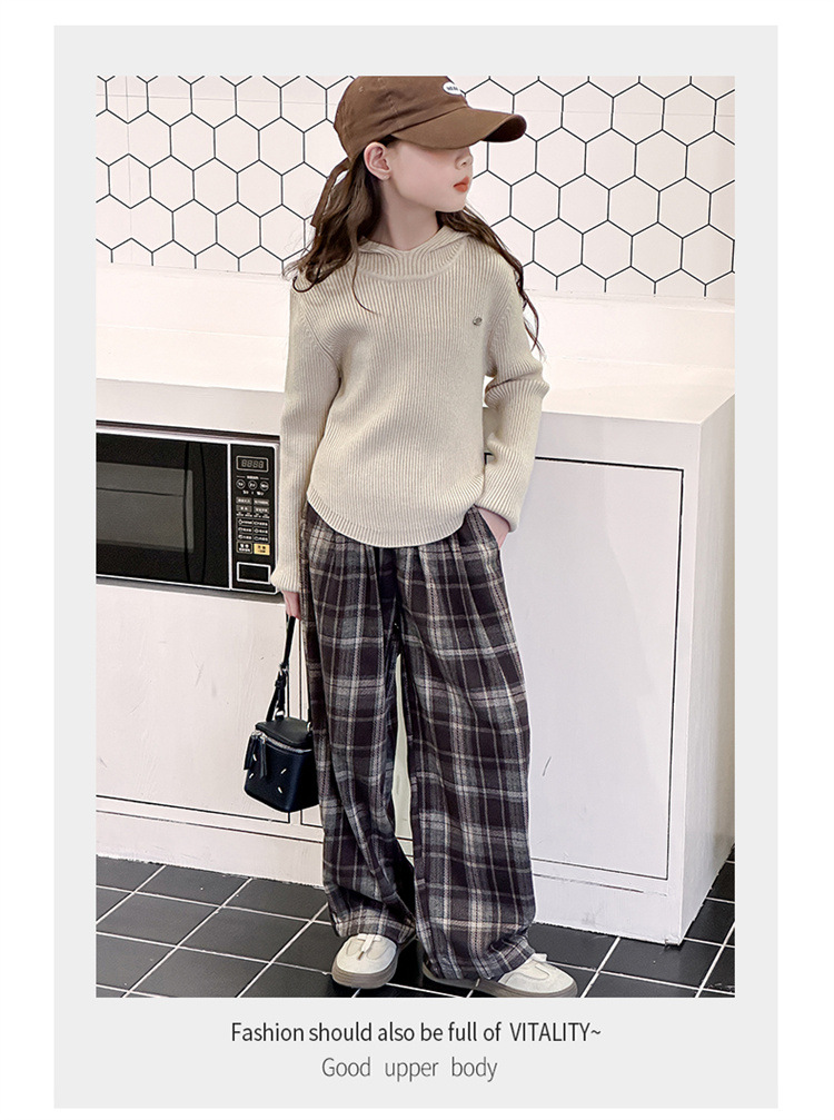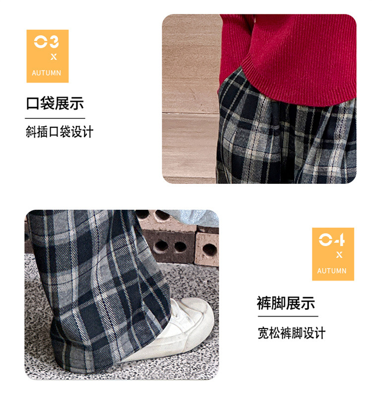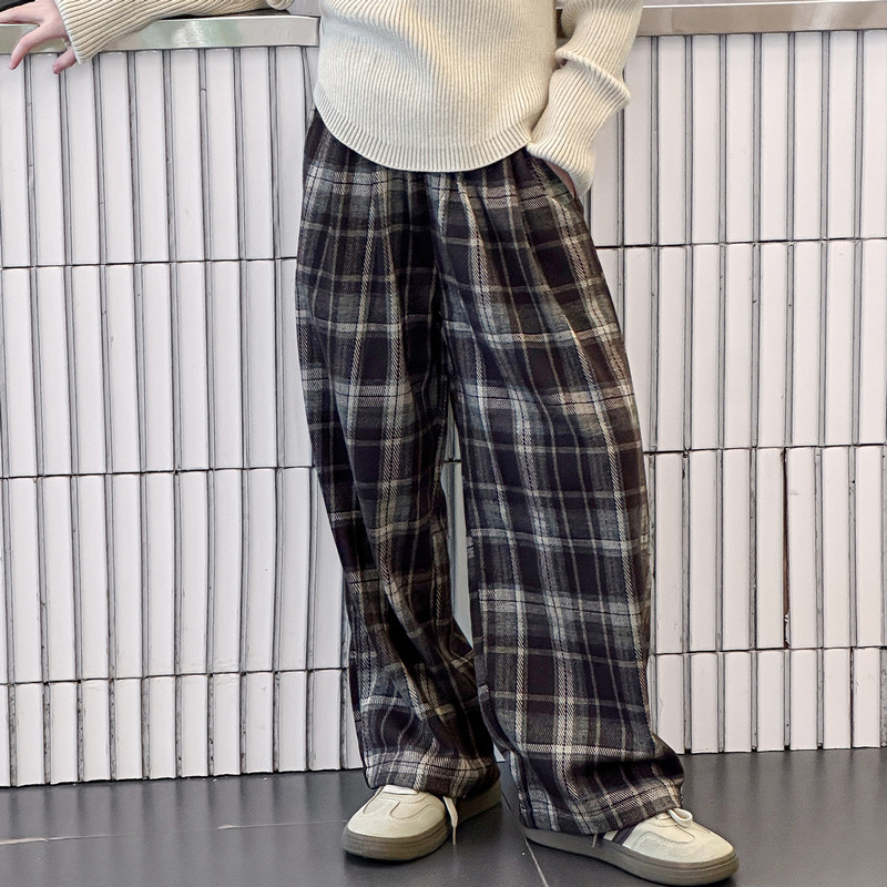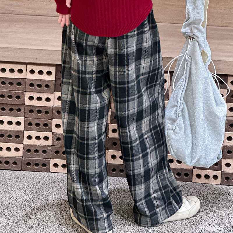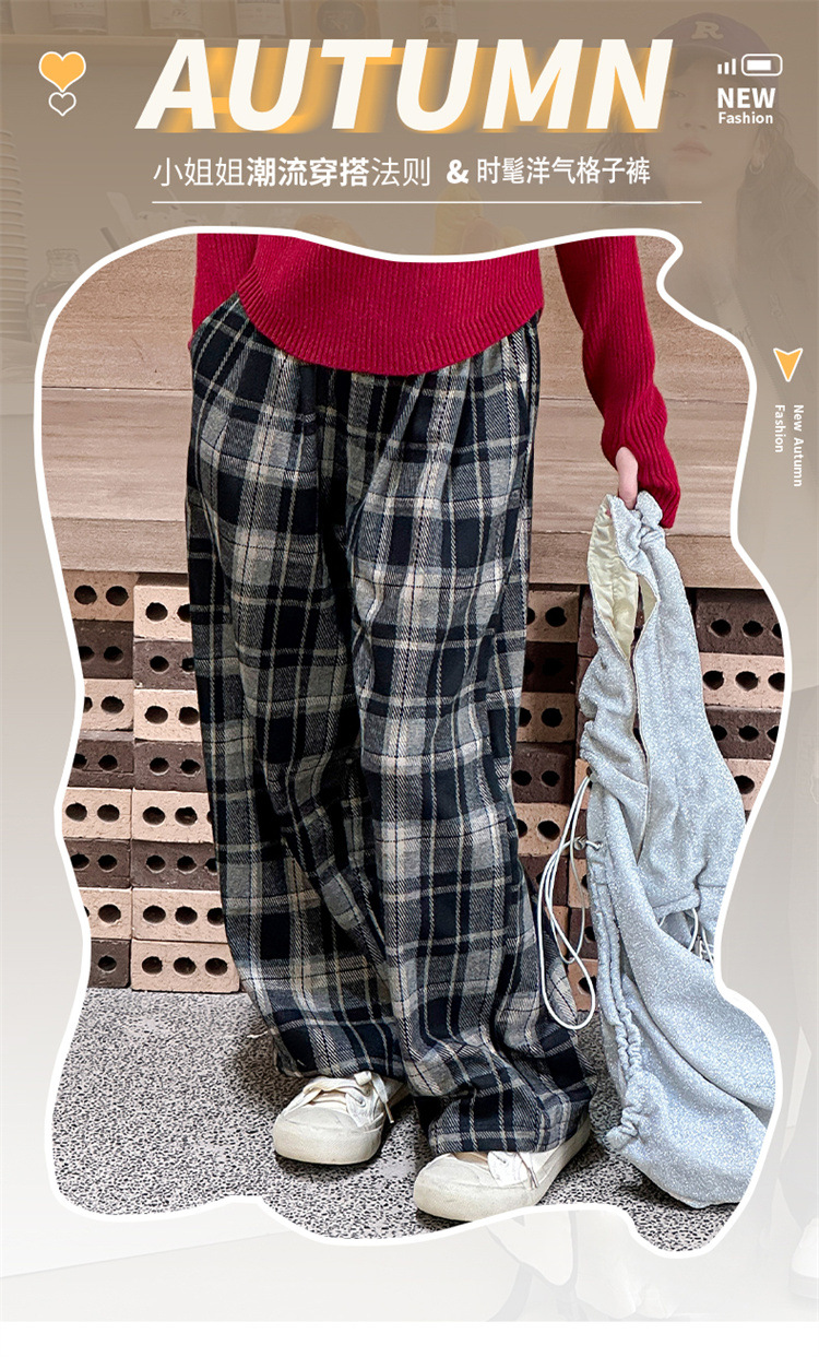 소녀 격자 무늬 와이드 레그 바지 봄과 가을 한국 스타일 소녀 패션 스트레이트 캐주얼 바지 어린이 가을 올 매치 바지스토어 가기