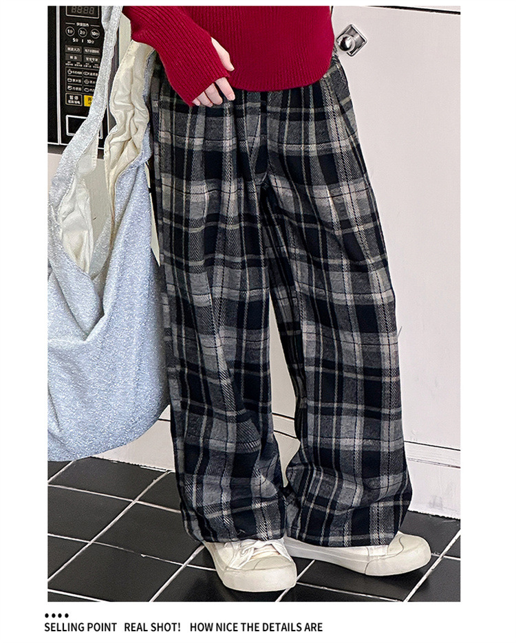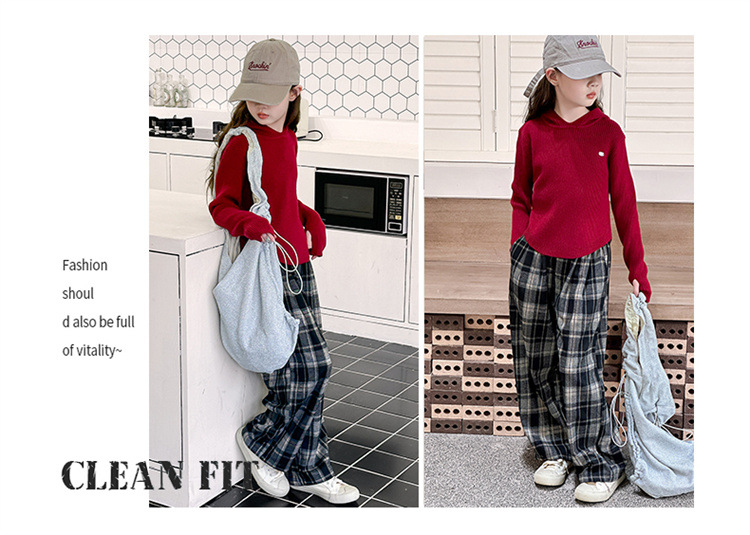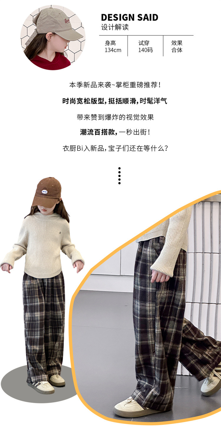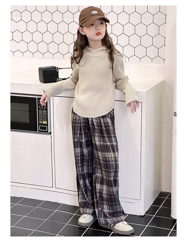 소녀 격자 무늬 와이드 레그 바지 봄과 가을 한국 스타일 소녀 패션 스트레이트 캐주얼 바지 어린이 가을 올 매치 바지스토어 가기