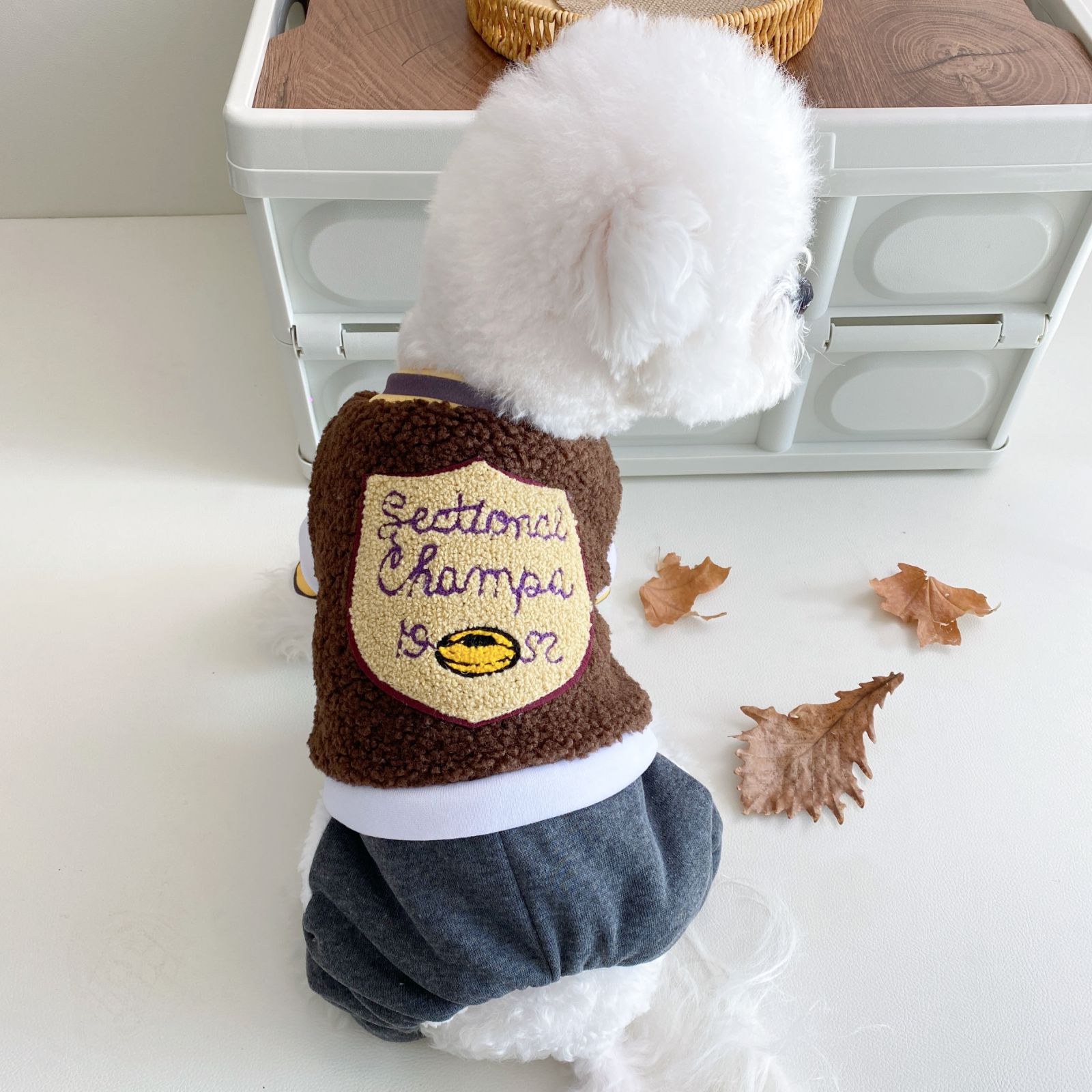 테디 강아지 옷 가을과 겨울 귀여운 네 다리 옷 두껍게 애완 동물 작은 개 bipone 곰 방법 dou 아름다움 따뜻한