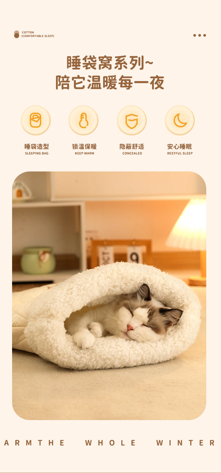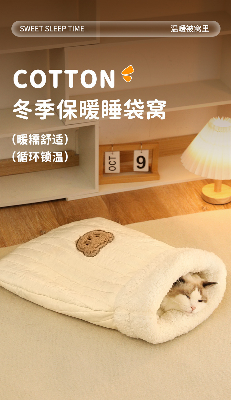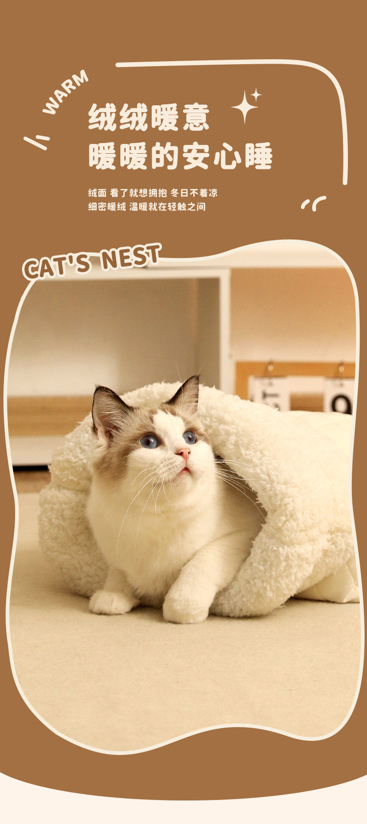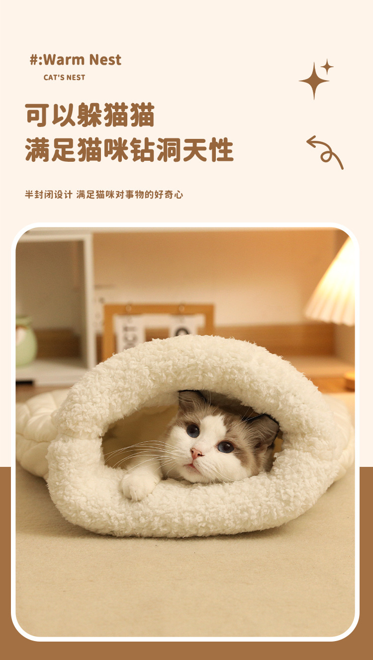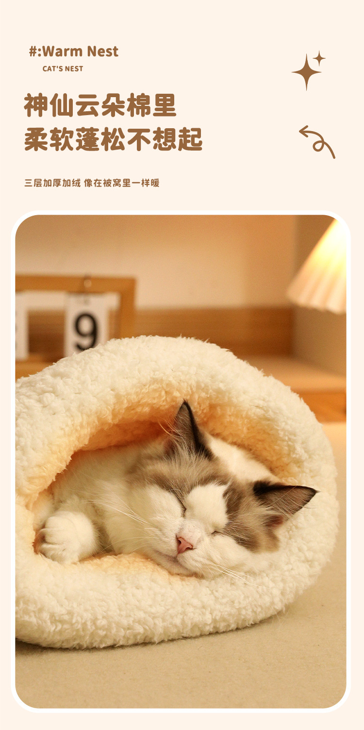 고양이 둥지 겨울 따뜻한 반 폐쇄 개집 가을과 겨울 깊은 수면 고양이 드릴 터널 쿠션 고양이 잠자는 가방