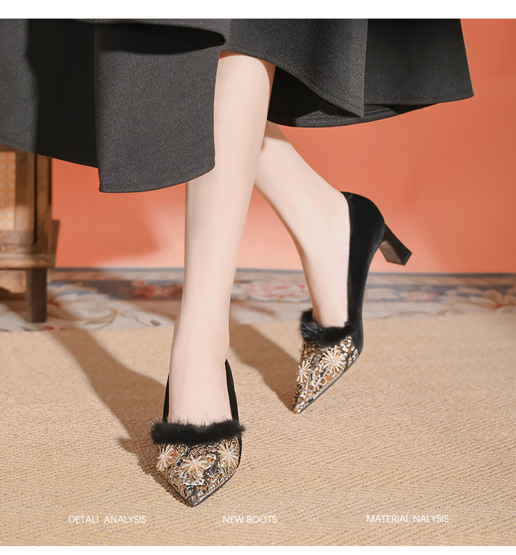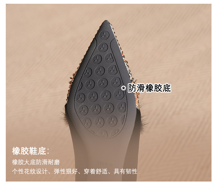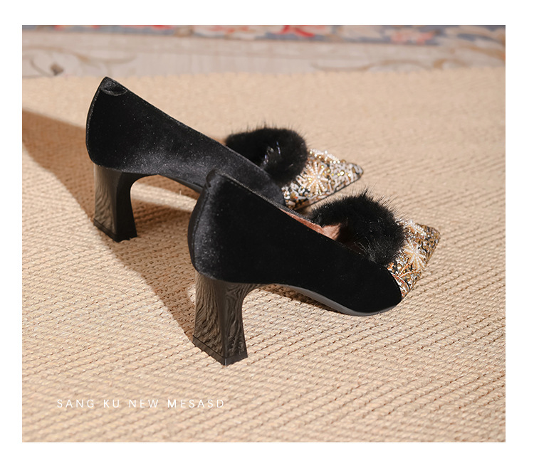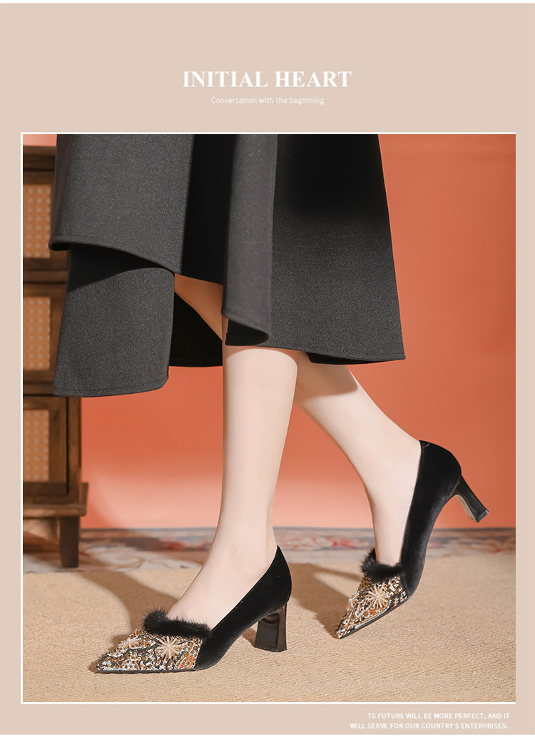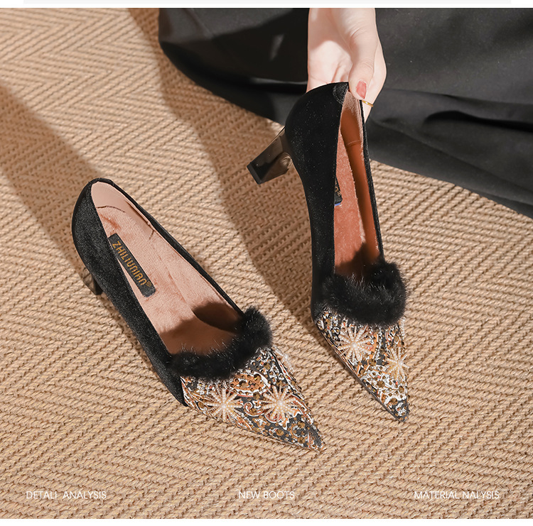 고급 스웨이드 푹신한 신발 여자 겨울 올 매치 펄 압력 다이아몬드 기모 하이힐 슈즈 여성 포인팅 토 여성용 신발스토어 가기