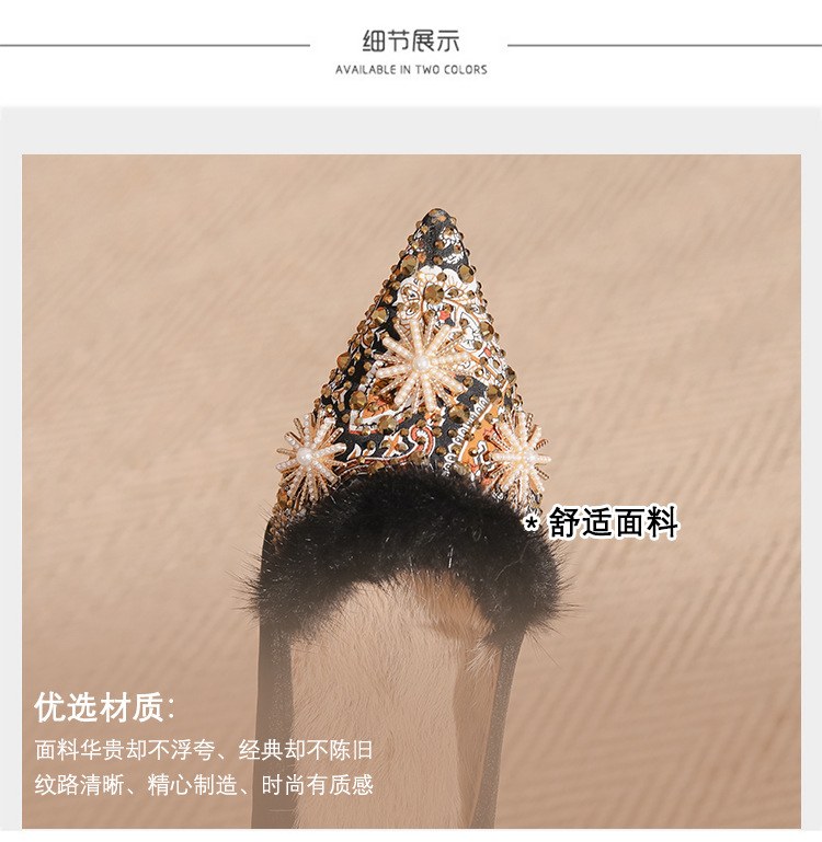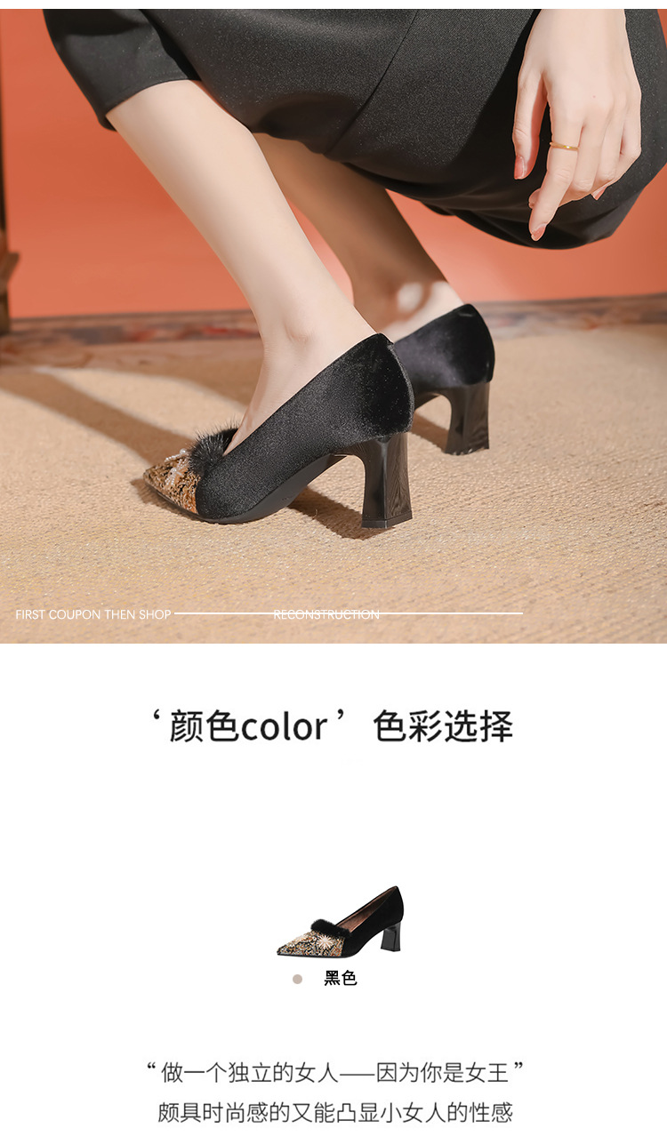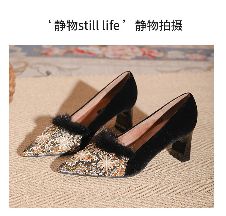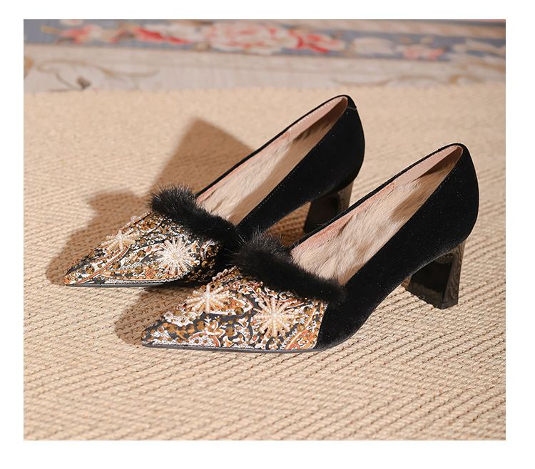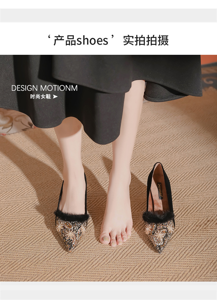 고급 스웨이드 푹신한 신발 여자 겨울 올 매치 펄 압력 다이아몬드 기모 하이힐 슈즈 여성 포인팅 토 여성용 신발스토어 가기