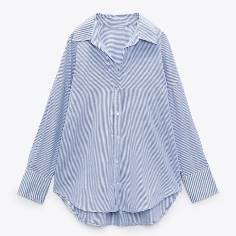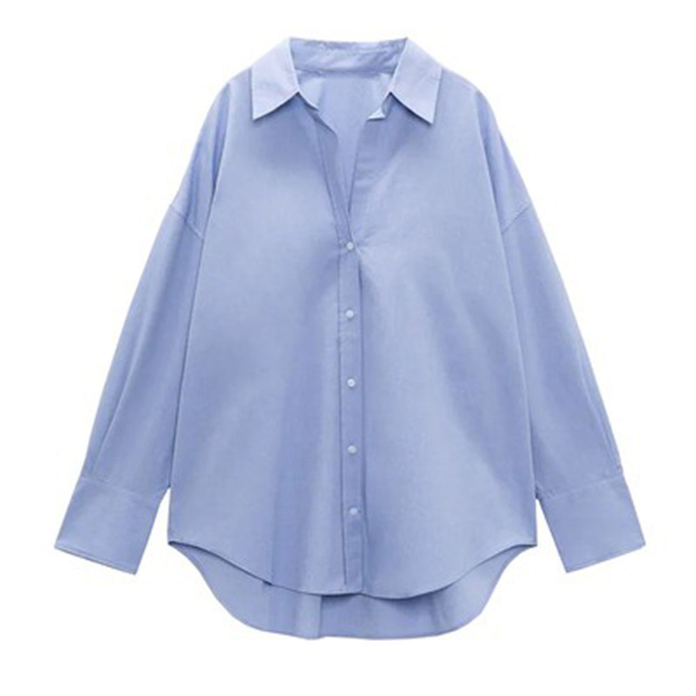 TAOP&ZA 봄 가을 신상 여성복, 우아한 통근 스타일, 단색 옥스퍼드 셔츠, 루즈핏, 다용도 8275952스토어 가기